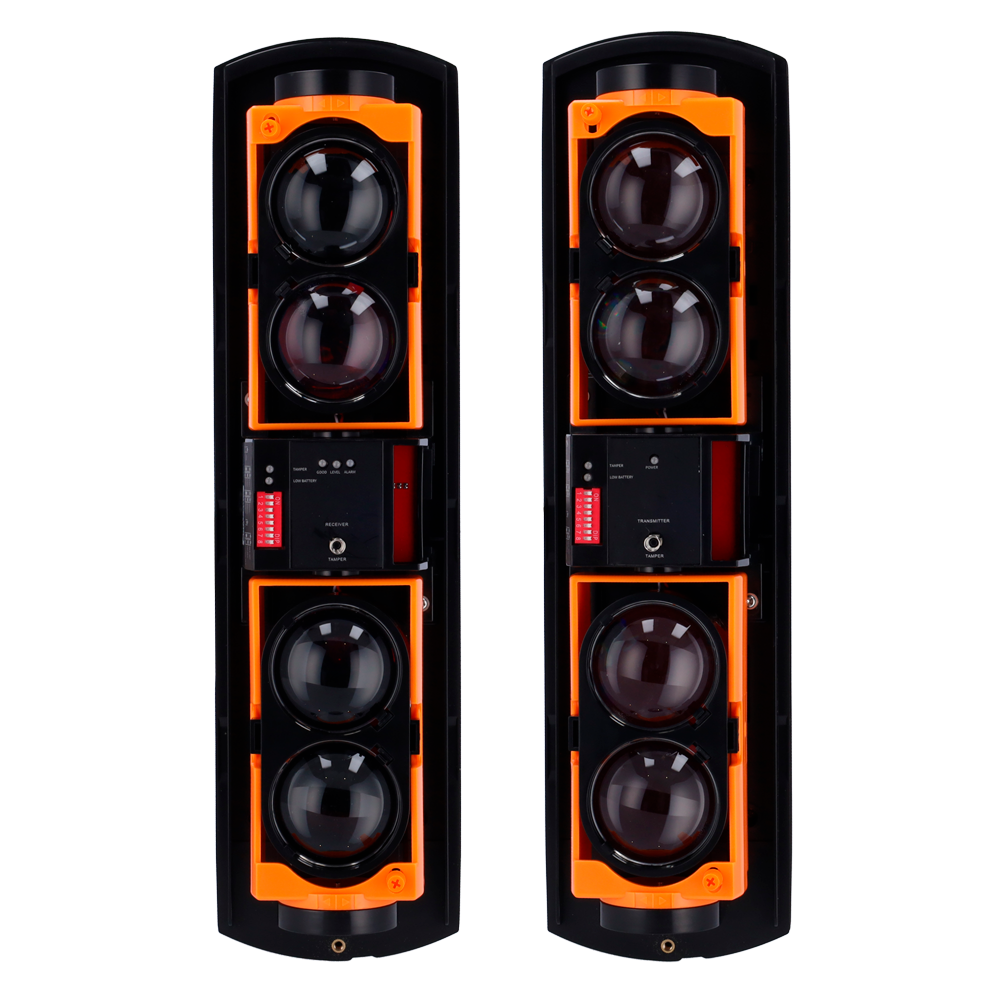 El ABH-200W es una barrera infrarroja de cuádruple haz diseñada para aplicaciones de seguridad perimetral, ofreciendo una detección precisa y fiable tanto en interiores como en exteriores. Su alcance máximo de detección es de 600 metros en interiores y 200 metros en exteriores, adaptándose a diversas necesidades de protección.