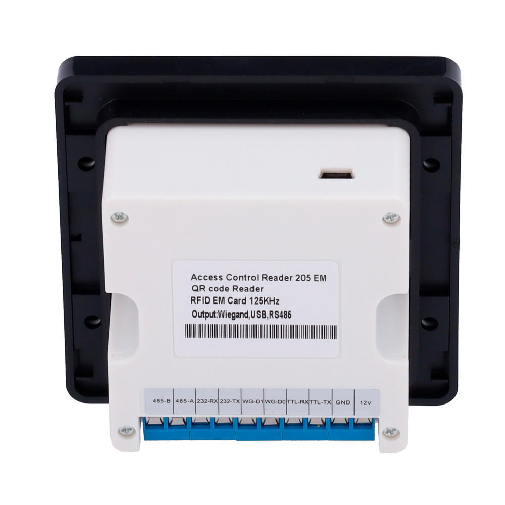 | Salidas | Wiegand 26/34, buzzer para indicación de estado, tamper USB para configuración |