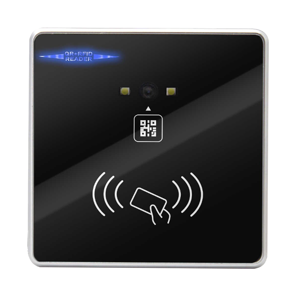 Este lector permite la identificación a través de tarjetas o llaveros con tecnología RFID EM de 125 kHz y lectura de códigos QR.