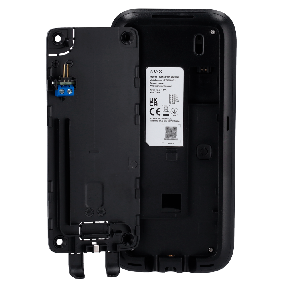 - Teclado con pantalla IPS táctil y lector RFID de tarjetas/tags Ajax