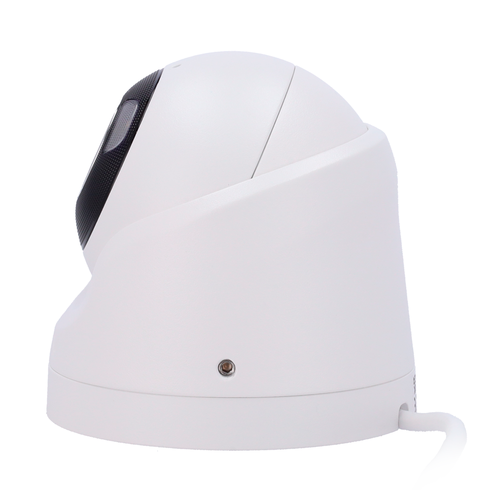 Cámara de tipo turret con resolución de 5 megapíxeles y lente de 4 mm, diseñada para ofrecer imágenes claras tanto de día como de noche gracias a su visión IR y luz blanca de hasta 50 metros.