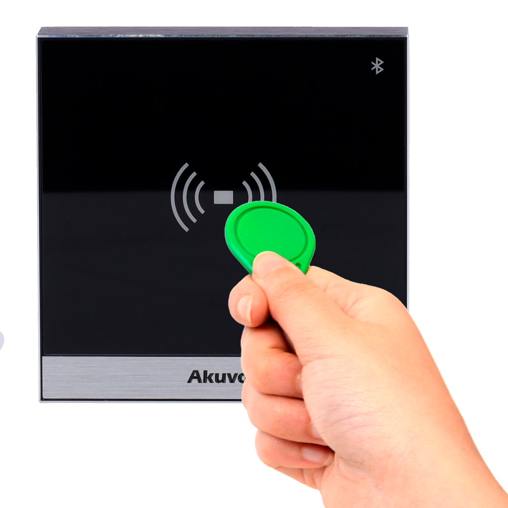 | Control de acceso | Apertura de puerta con tarjeta RFID EM 125 kHz y MF 13.56 MHz, NFC y Bluetooth BLE, con registros |
