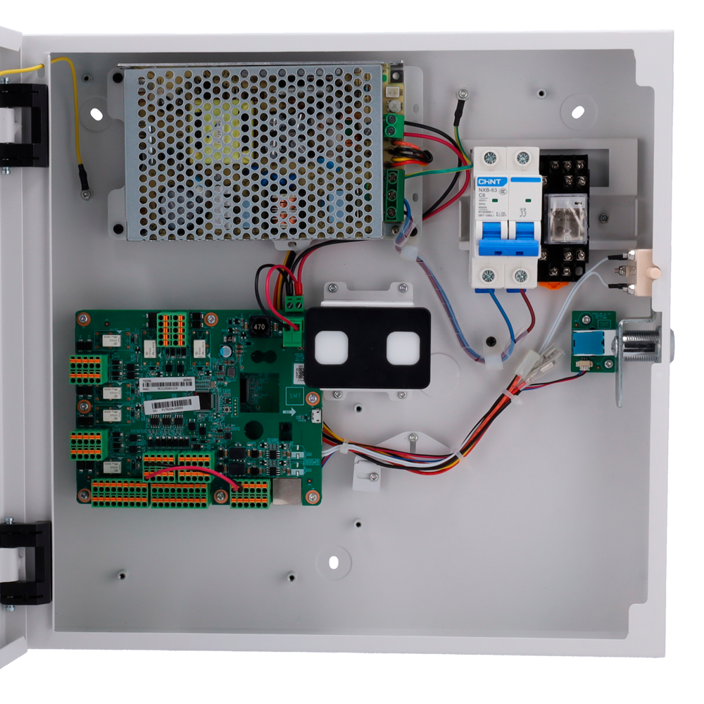 Las controladoras permiten gestionar varias puertas de manera simultánea mediante varias salidas de relé. Este modelo cuenta con 4 salidas de relé, siendo configurables como contacto seco (sin tensión).