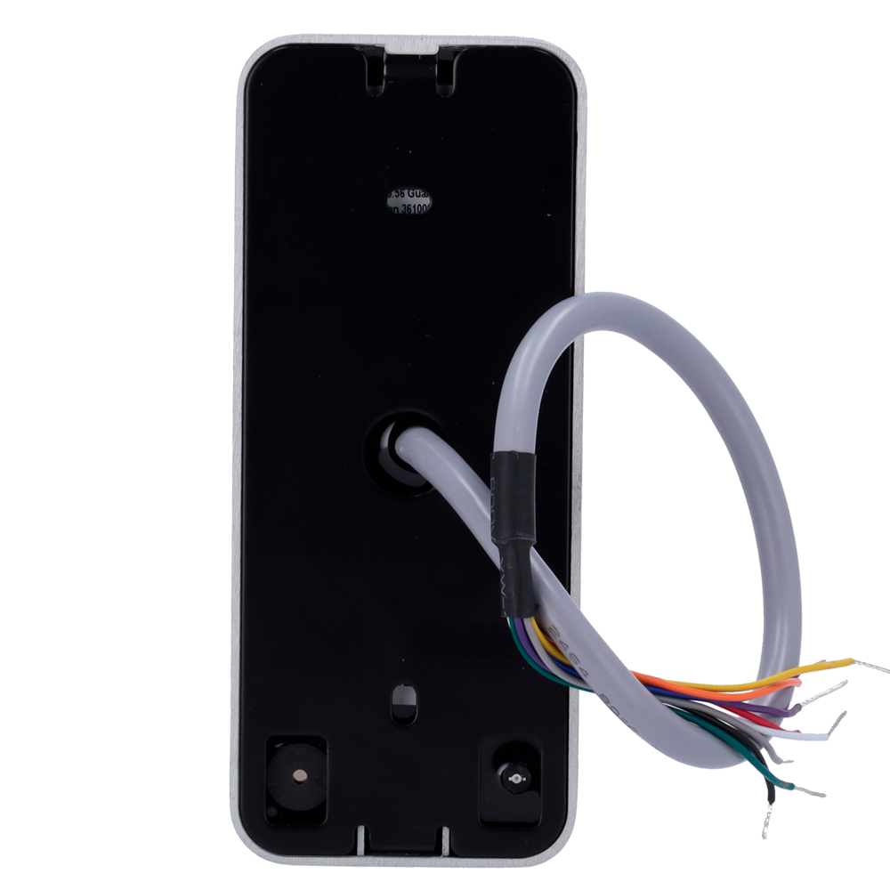 Este lector permite la identificación a través de tarjetas o llaveros con tecnología RFID EM de 125 kHz y MF de 13.56 MHz, así como teclado para códigos numéricos.