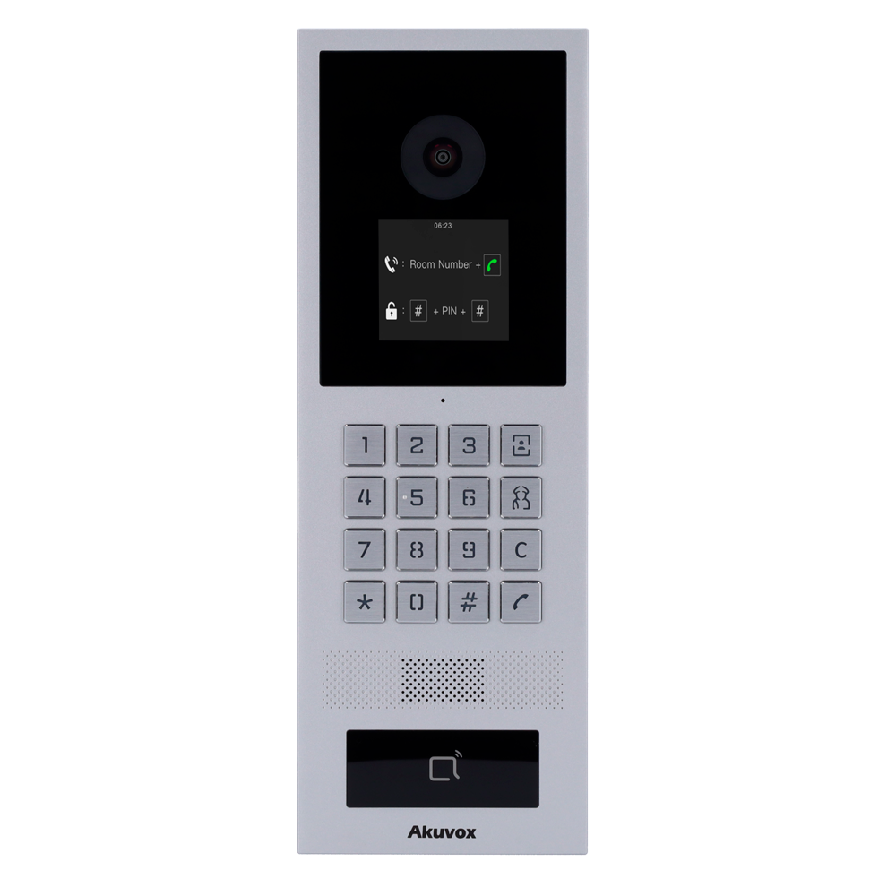Su pantalla de 2.8″ permite mostrar el directorio de los usuarios a los que llamar, junto con su teclado numérico, para introducir códigos PIN para el acceso.