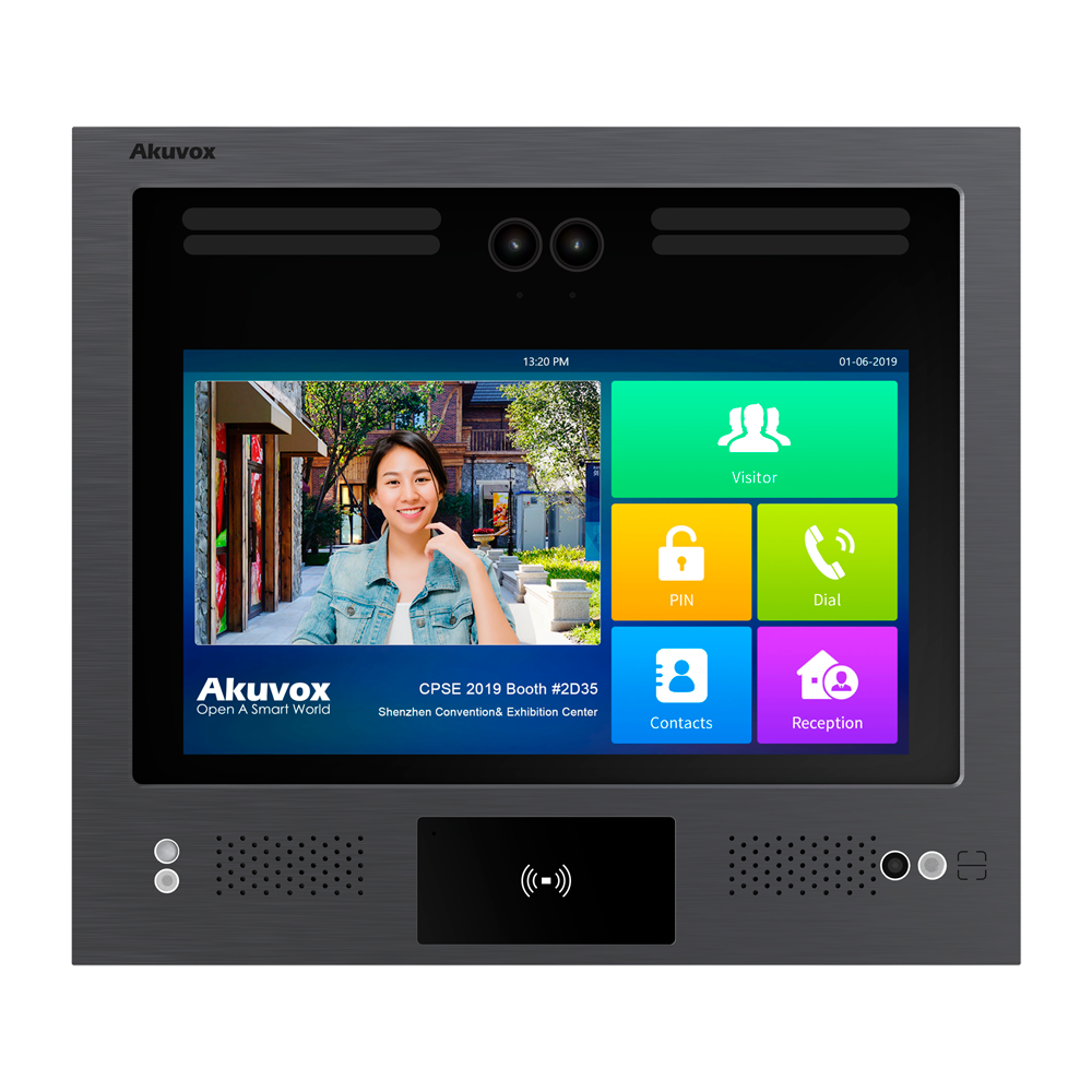 Su pantalla táctil de 13″ permite mostrar el directorio de los usuarios a los que llamar, así como introducir códigos PIN para el acceso.