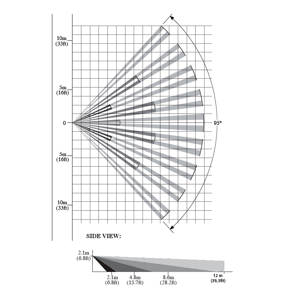 - Detección: Rango 7 m / 15 m / H: 100º