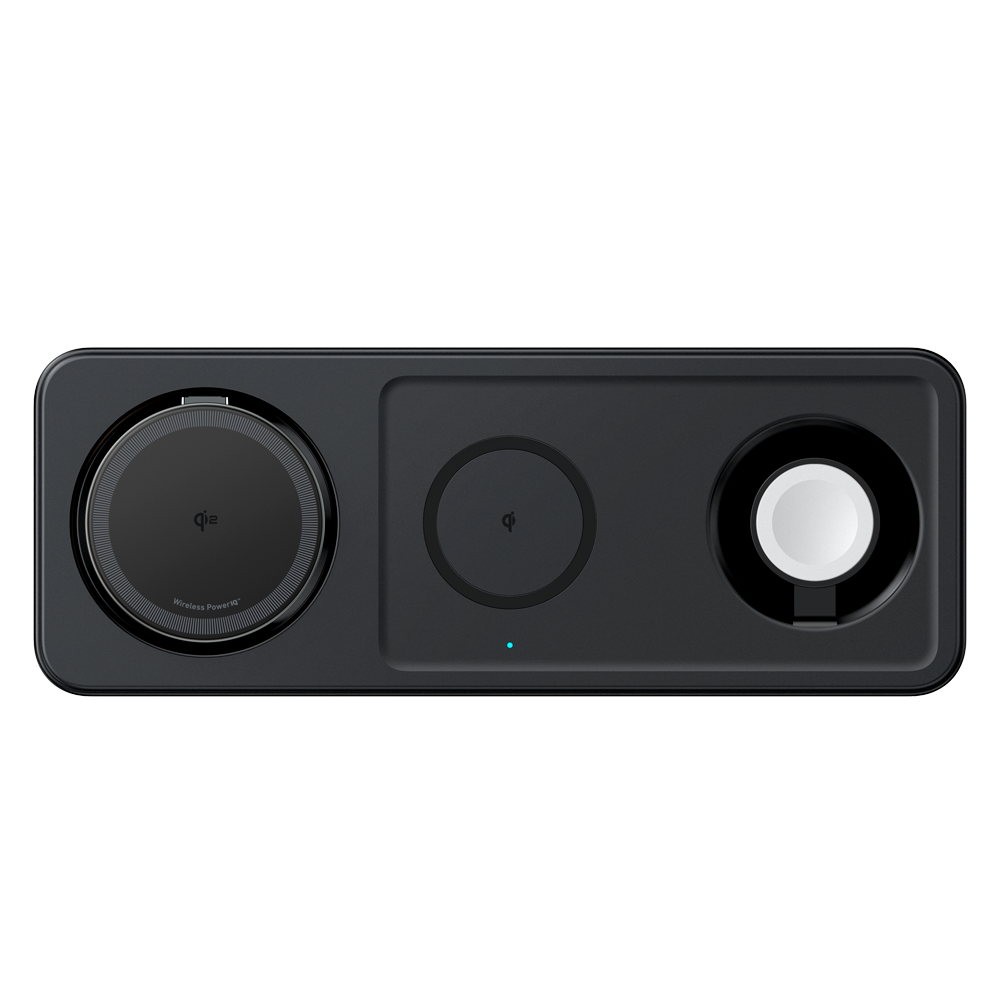El cargador ANK-PWCHARGER-3-IN-1-B es una solución muy práctica y eficiente de ANKER para cargar 3 dispositivos diferentes (Smartphone, Smartwatch y auriculares inalámbricos) de forma simultánea, inalámbrica y rápida.