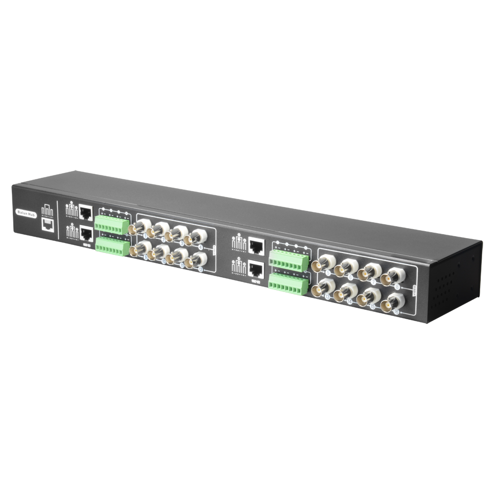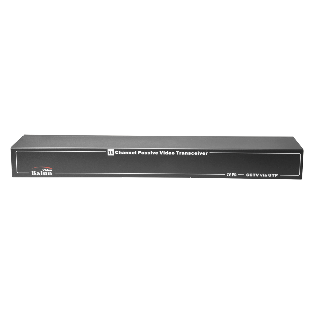 Transceptor pasivo de vídeo por par trenzado de 16 canales, optimizado para vídeo de alta definición HDTVI / HDCVI / AHD / CVBS. Puede funcionar como emisor o como receptor, y permite transmitir la señal de hasta cuatro cámaras de vídeo por un único cable UTP.