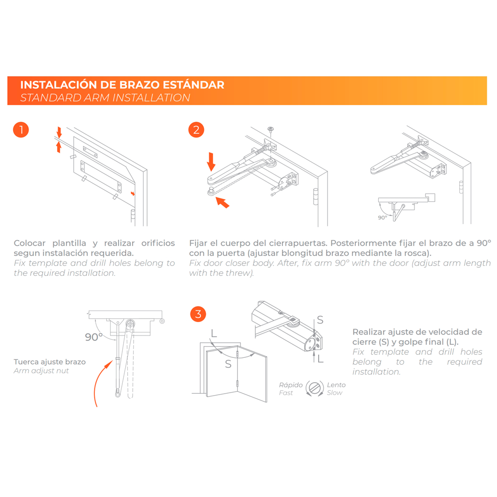 | Instalación | En superficie y reversible (para cierre a derecha o izquierda) |