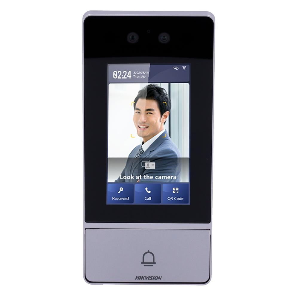 | Control de acceso | Apertura de puerta con tarjeta MF 13.56 MHz, reconocimiento facial, contraseña y QR Hasta 20.000 usuarios, 10.000 caras y 100.000 tarjetas/contraseñas/QR Bluetooth (sólo soportado con HikCentral y HikConnect Teams a través de APP HikCentral Mobile y APP HikConnect) |