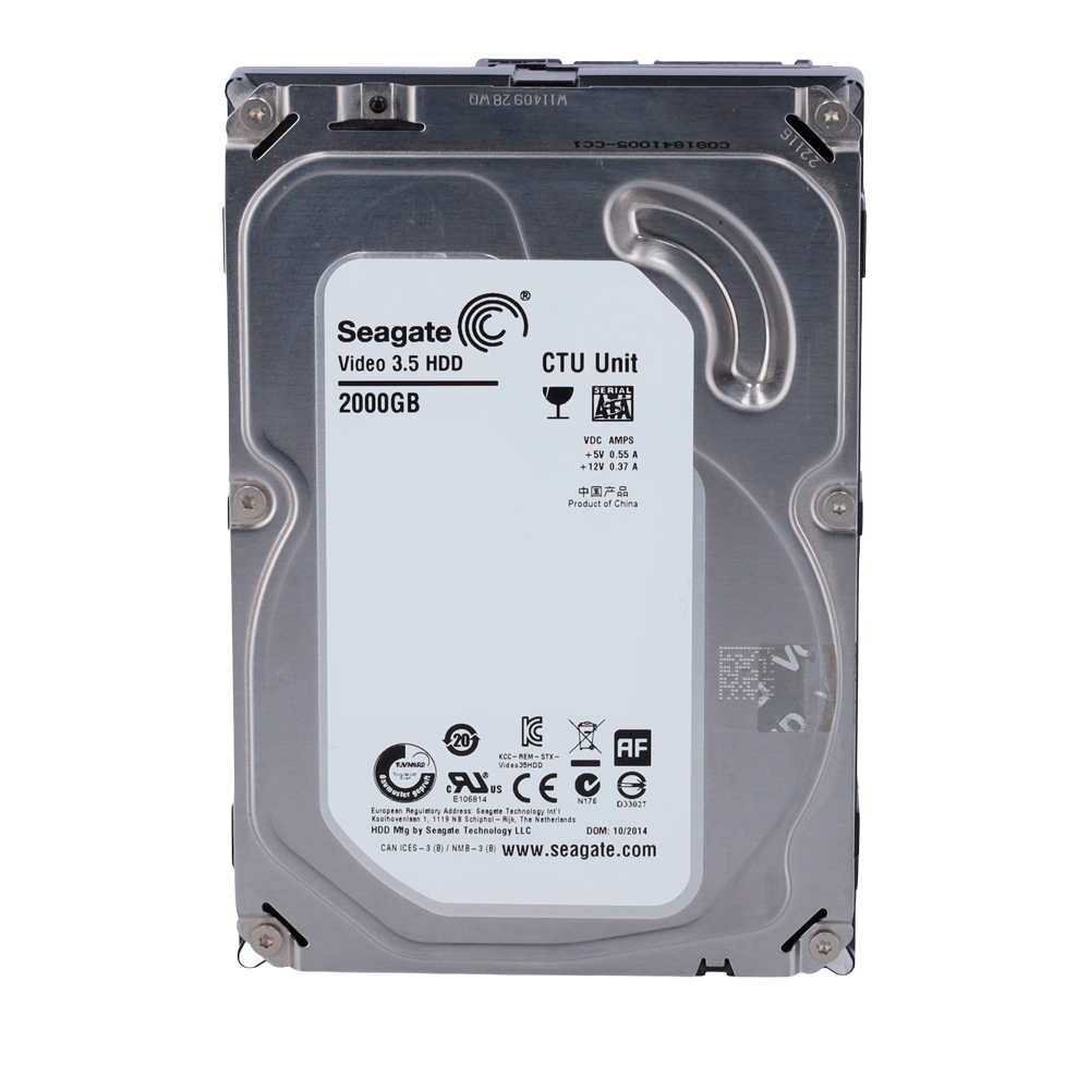 Modelo ST2000VM003 del fabricante Seagate. Diseñado y fabricado especialmente para el almacenamiento en sistemas de Vídeovigilancia de hasta 64 cámaras de alta definición de transmisión única.
