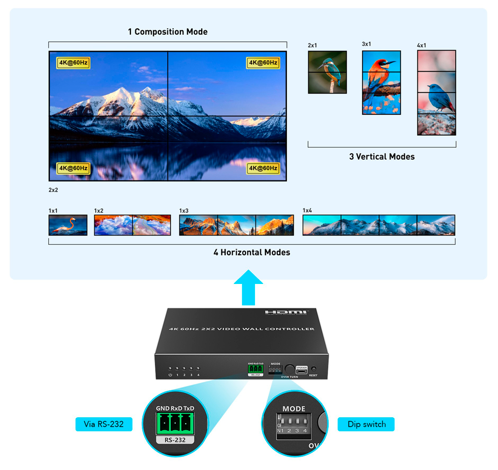 | Videowall compatible | 1×1/1×2/1×3/1×4/2×1/3×1/4×1/2×2 |