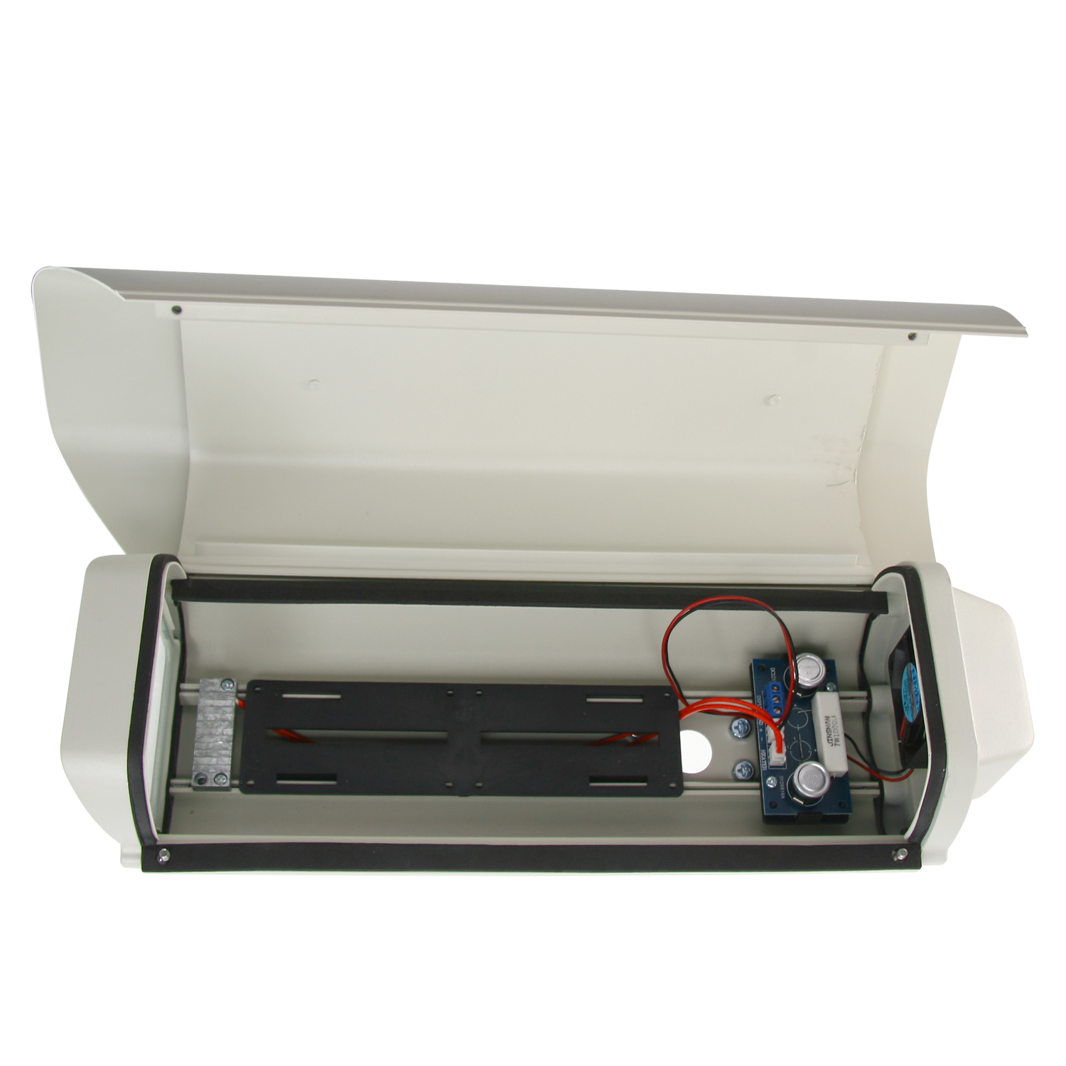 Especialmente indicada para colocar cámaras de vigilancia en el exterior, protegiéndolas de los agentes externos, incluida el agua, el polvo, el frío o el calor excesivos. La cabina puede albergar en su interior todos los modelos de cámaras de tipo “Box” (Full Body, sin lente ni carcasa) de nuestro catálogo. Carcasa de alta gama, de color blanco marfil y diseño robusto y elegante. Incorpora parasol, salida para cables protegida a través del soporte y múltiples ranuras para la instalación de la cámara en su interior.