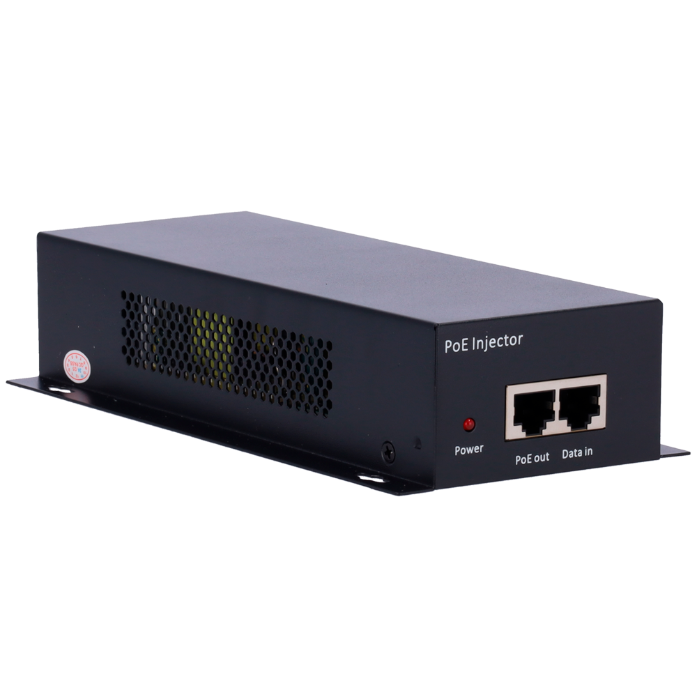 - Permite inyectar datos y alimentación en un cable UTP para alimentar dispositivos PoE (hasta 60W)