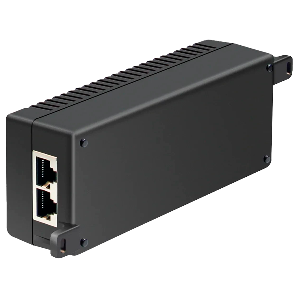 - Permite inyectar datos y alimentación en un cable UTP para alimentar dispositivos PoE+ (hasta 30W, max. 52 VDC) remotamente