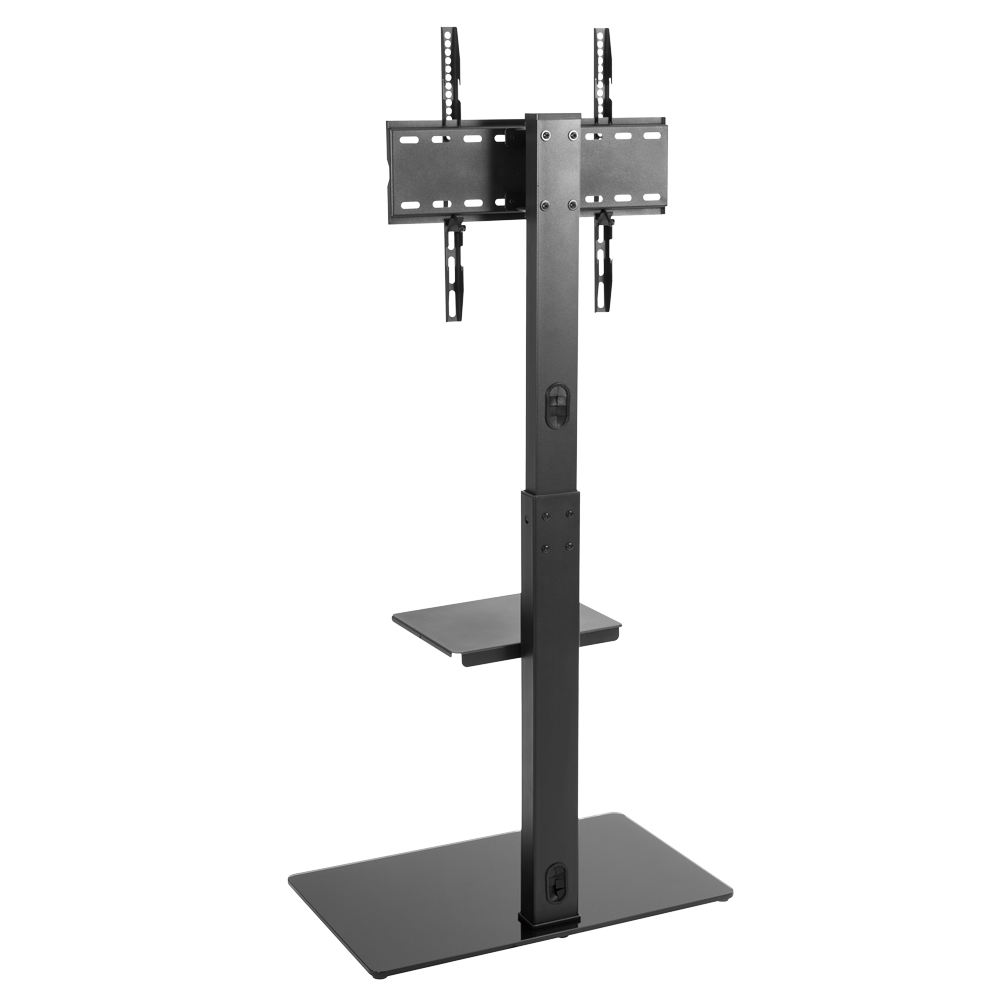 Un soporte a suelo con peana es una estructura que sostiene un monitor en el suelo, con una base estable (peana) que proporciona soporte y estabilidad. Este tipo de soporte es ideal para ubicaciones donde no se quiere o no se puede montar el monitor en la pared.
