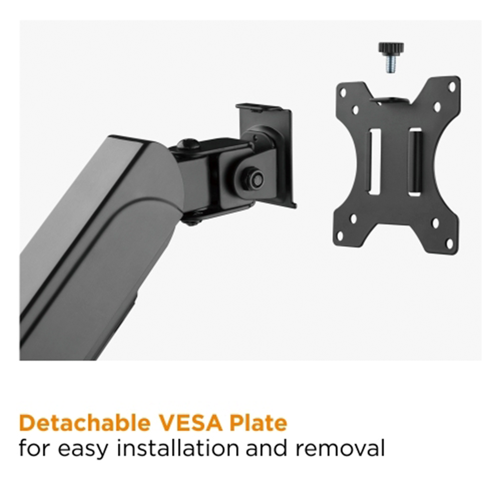 Un soporte de brazo de mesa para monitor es un accesorio diseñado para sostener y ajustar el monitor de forma ergonómica. Se fija al borde o a la superficie del escritorio mediante una base o abrazadera, y permite mover el monitor con libertad en diferentes direcciones: altura, inclinación, giro y distancia.