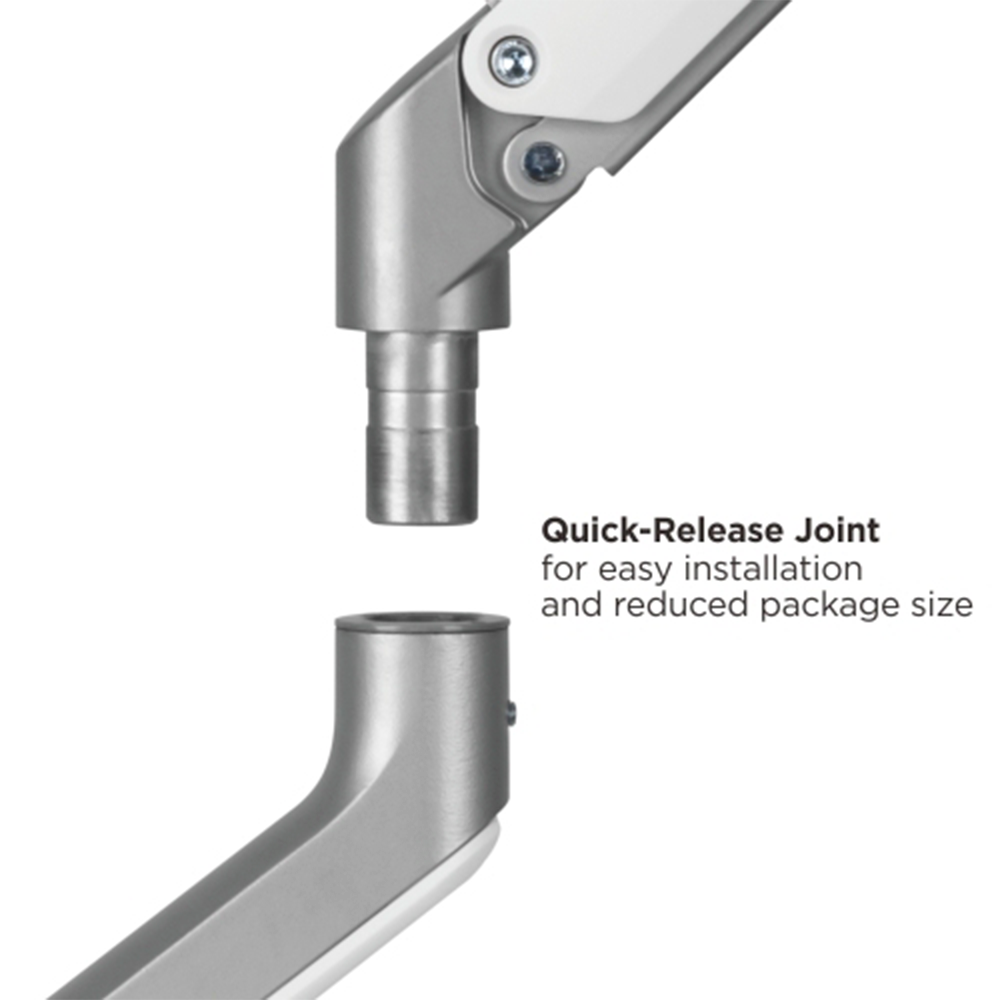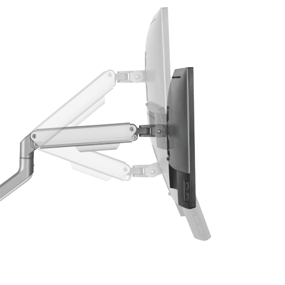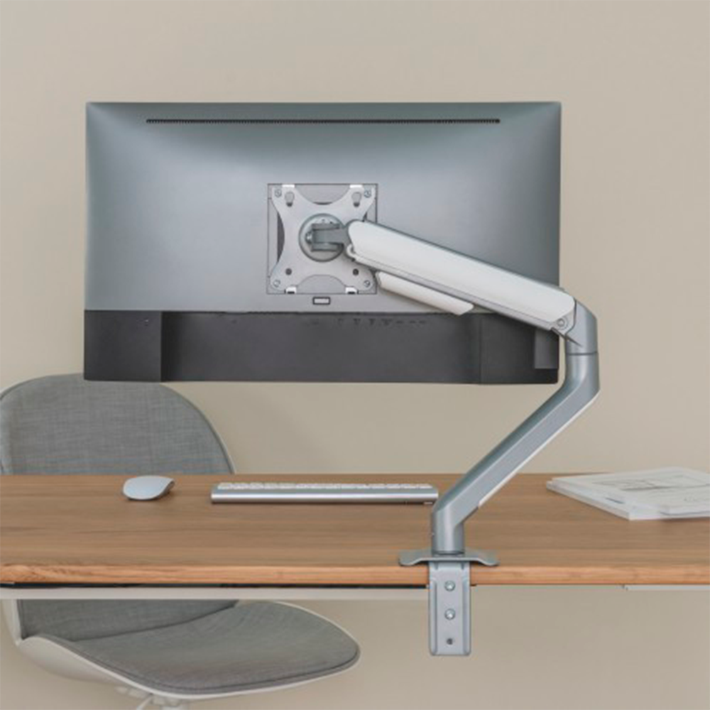 Un soporte de brazo de mesa para monitor es un accesorio diseñado para sostener y ajustar el monitor de forma ergonómica. Se fija al borde o a la superficie del escritorio mediante una base o abrazadera, y permite mover el monitor con libertad en diferentes direcciones: altura, inclinación, giro y distancia.