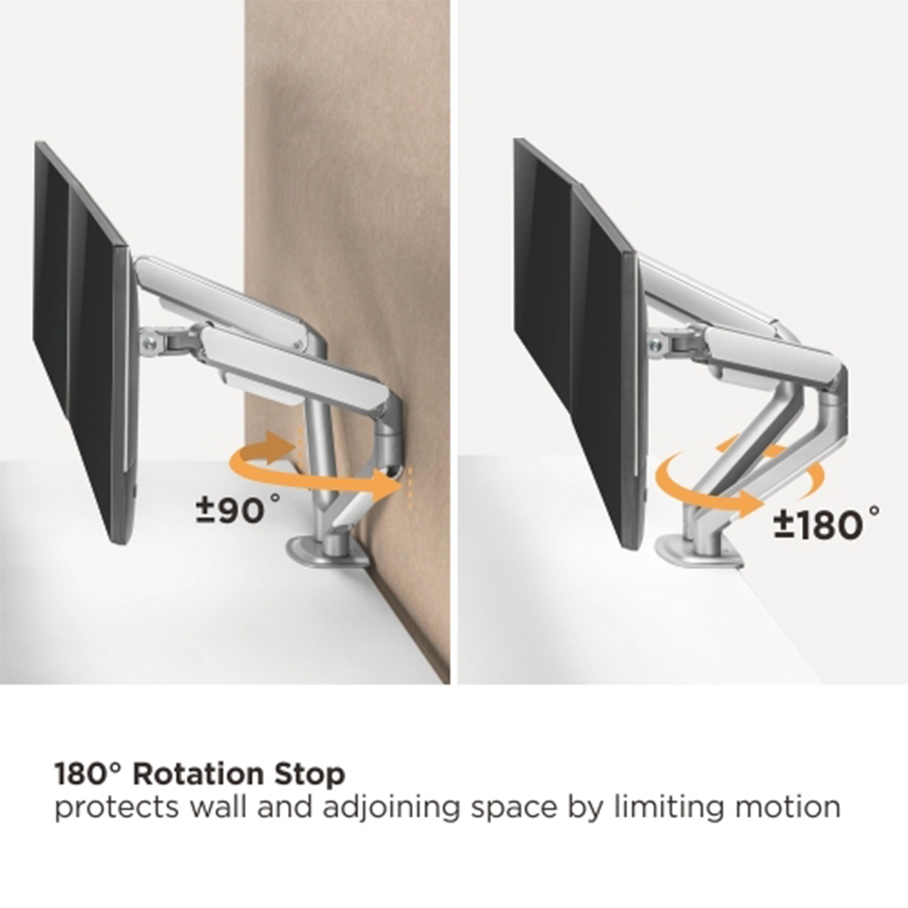 Un soporte de doble brazo de instalación en mesa para monitores es un accesorio diseñado para sostener y ajustar los dos monitores de forma ergonómica. Se fija al borde o a la superficie del escritorio mediante una base o abrazadera, y permite mover el monitor con libertad en diferentes direcciones: altura, inclinación, giro y distancia.