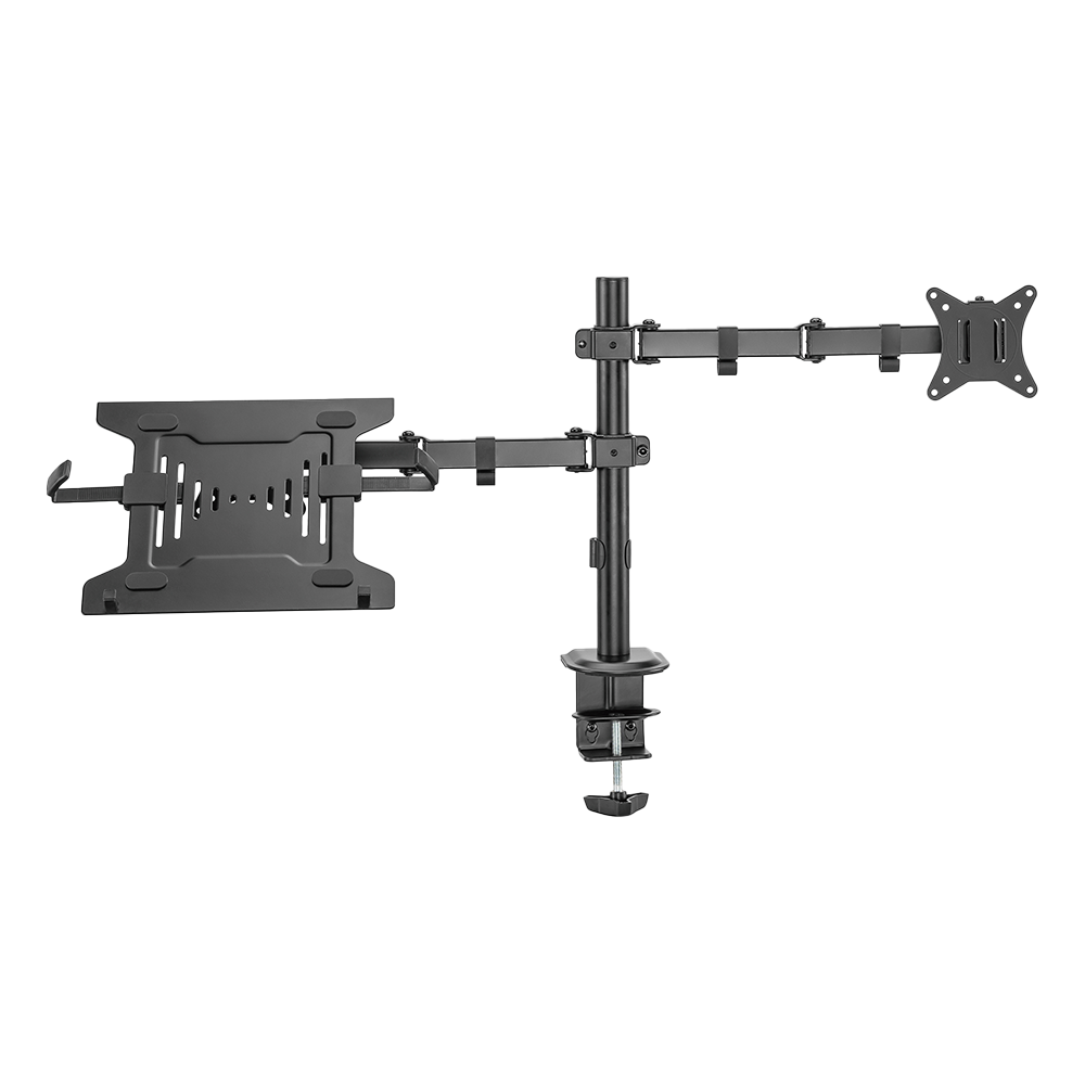 Un soporte de brazo de mesa para monitor es un accesorio diseñado para sostener y ajustar el monitor de forma ergonómica. Se fija al borde o a la superficie del escritorio mediante una base o abrazadera, y permite mover el monitor con libertad en diferentes direcciones: altura, inclinación, giro y distancia.