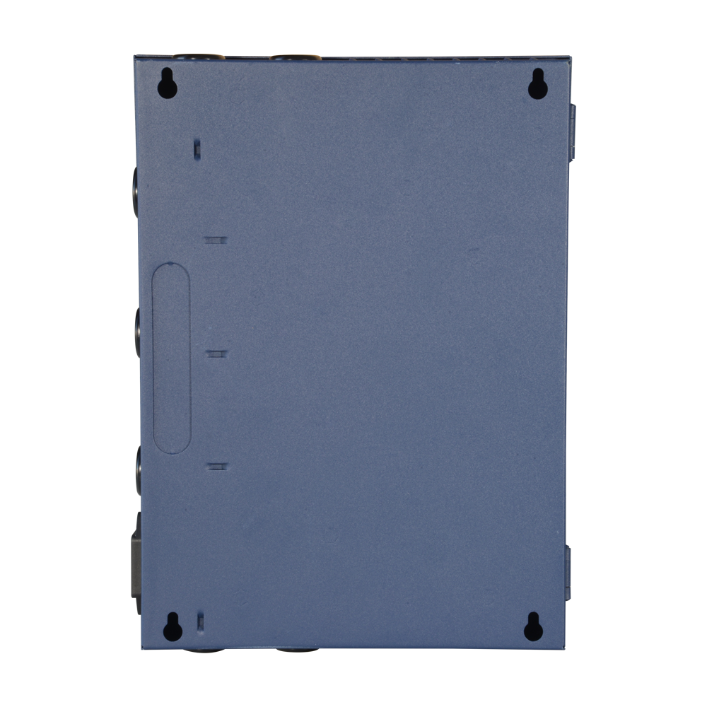 Caja de distribución de alimentación profesional. Se utiliza como fuente de alimentación centralizada para varias cámaras u otros dispositivos de seguridad ofreciendo protección individualizada.