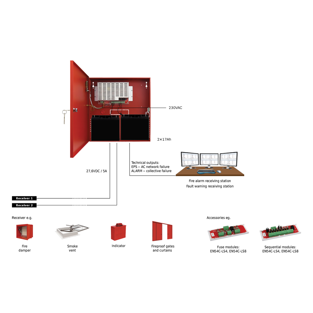 | Batería de back-up | Admite hasta 2x12VDC / 17Ah |