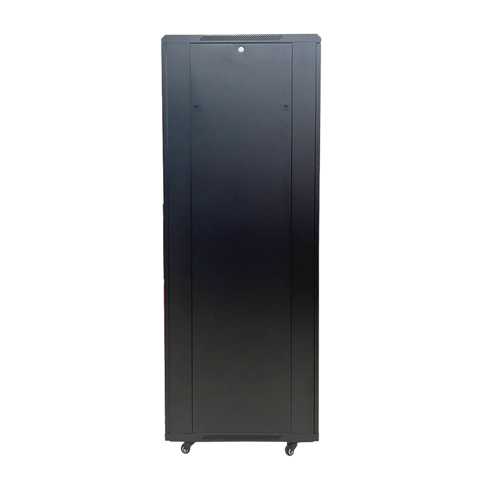 El RACK-32U-8D destaca por su construcción robusta en acero laminado en frío SPCC con acabados desengrasantes y recubrimiento en polvo de alta resistencia. Presenta un perfil de montaje en forma de S con un espesor de 2.0 mm que permite un ajuste libre hacia adelante y atrás para optimizar el espacio interno según las necesidades del equipo. Sus paneles laterales son fácilmente removibles mediante pestillos de liberación rápida, facilitando el acceso total a los equipos, mientras que la base y el techo cuentan con entradas de cable estratégicas para una organización profesional y limpia.