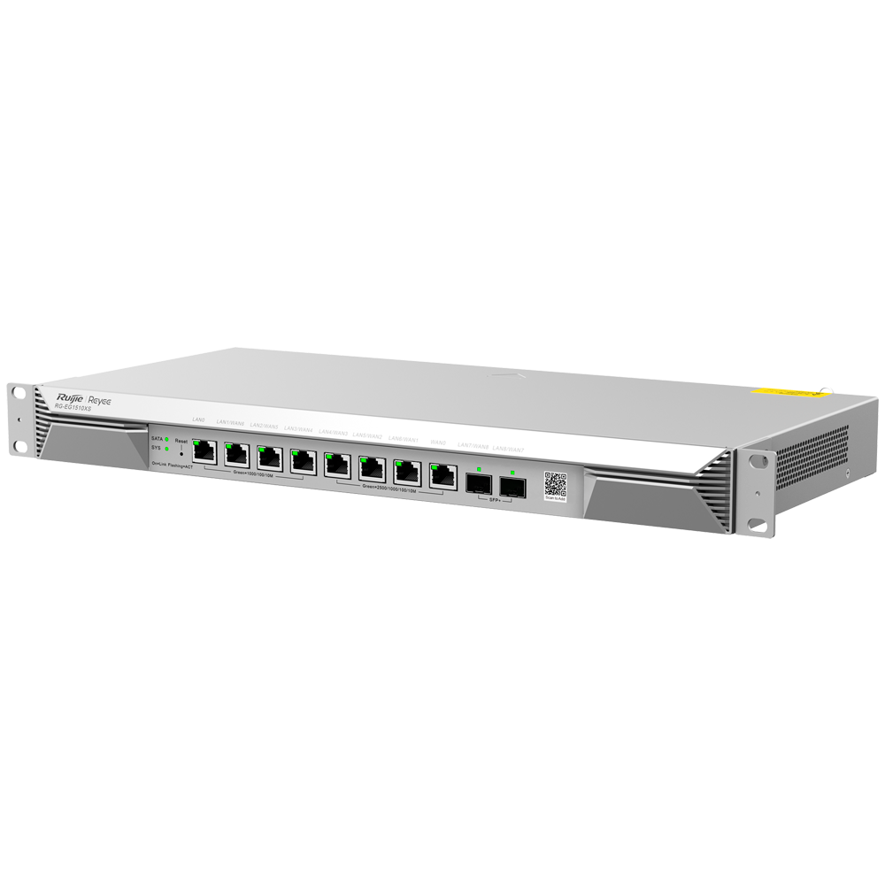 Este dispositivo RG-EG1510XS integra 2 puertos SFP+ de 10 Gbps para enlaces ascendentes de fibra ultra rápidos, complementados con 8 puertos Gigabit RJ45. Está optimizado para gestionar hasta 1500 usuarios concurrentes. Su seguridad robusta mediante múltiples túneles VPN (IPsec, L2TP, Wireguard y OpenVPN) y su gestión gratuita a través de Ruijie Cloud lo convierten en la solución definitiva para proyectos de hospitality que requieren fiabilidad y automatización.
