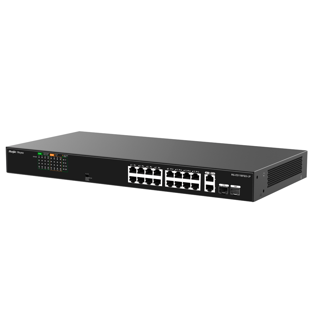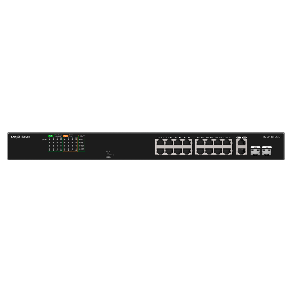 El Ruijie Reyee RG-ES118FGS-LP es la solución de conectividad Gigabit diseñada para proyectos que requieren alta velocidad y la fiabilidad de la fibra óptica, pero con un consumo energético optimizado. Equipado con 16 puertos de 1000 Mbps alimentados por PoE+, este switch es ideal para desplegar redes de cámaras IP de alta resolución, puntos de acceso Wi-Fi modernos o sistemas de telefonía VoIP, asegurando que el tráfico de datos fluya sin latencia. Al ser un modelo “LP” (Low Power), ofrece un presupuesto de 120W, perfecto para instalaciones eficientes donde se busca un rendimiento profesional con un consumo eléctrico equilibrado.