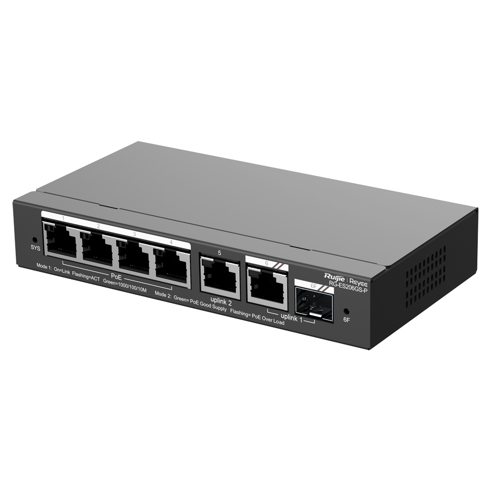 - 4 Puertos PoE + 2 Puertos Rj45 + 1 SFP Combo