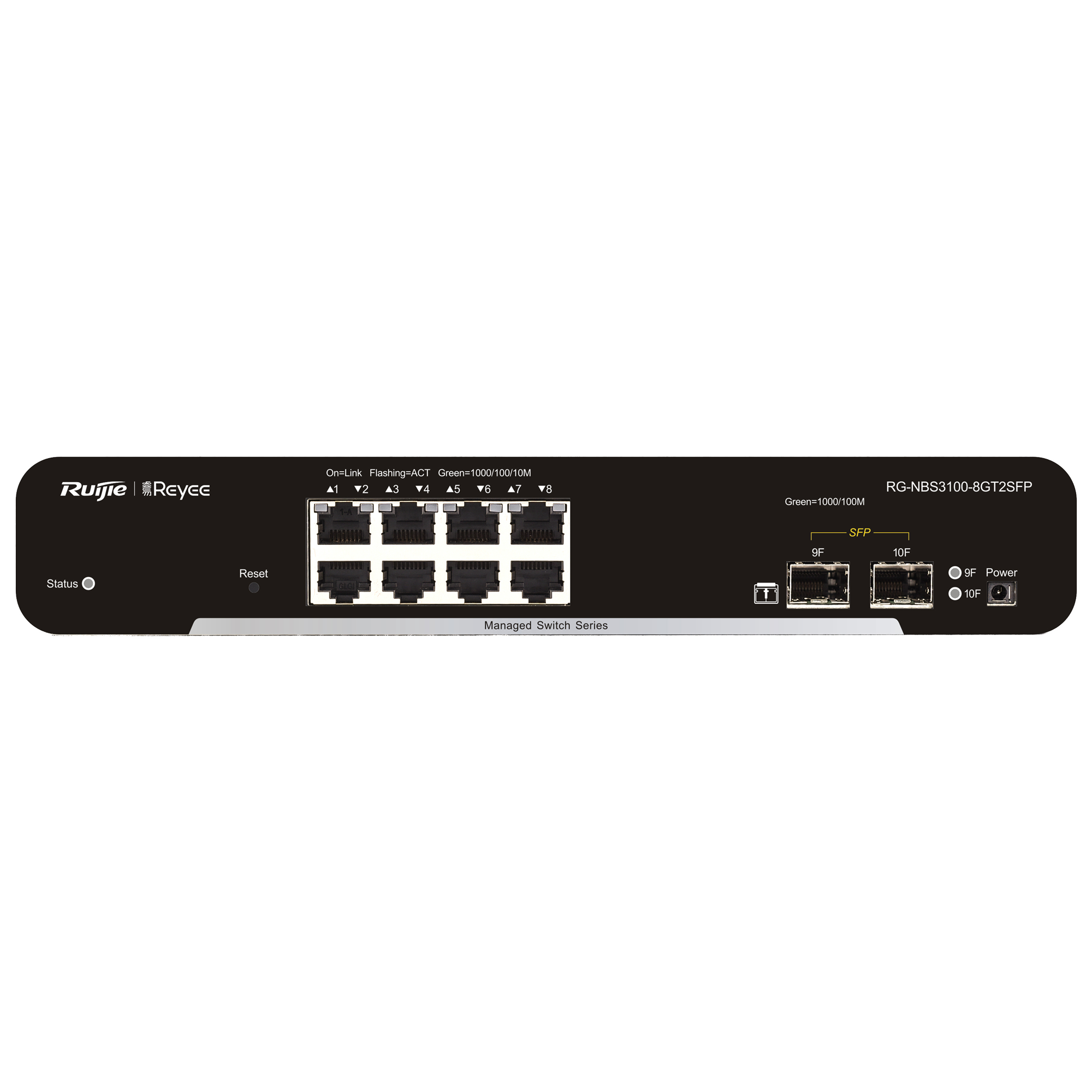 - 8 puertos RJ45 10/100/1000 Mbps + 2 Puertos SFP 10/100/1000 Mbps