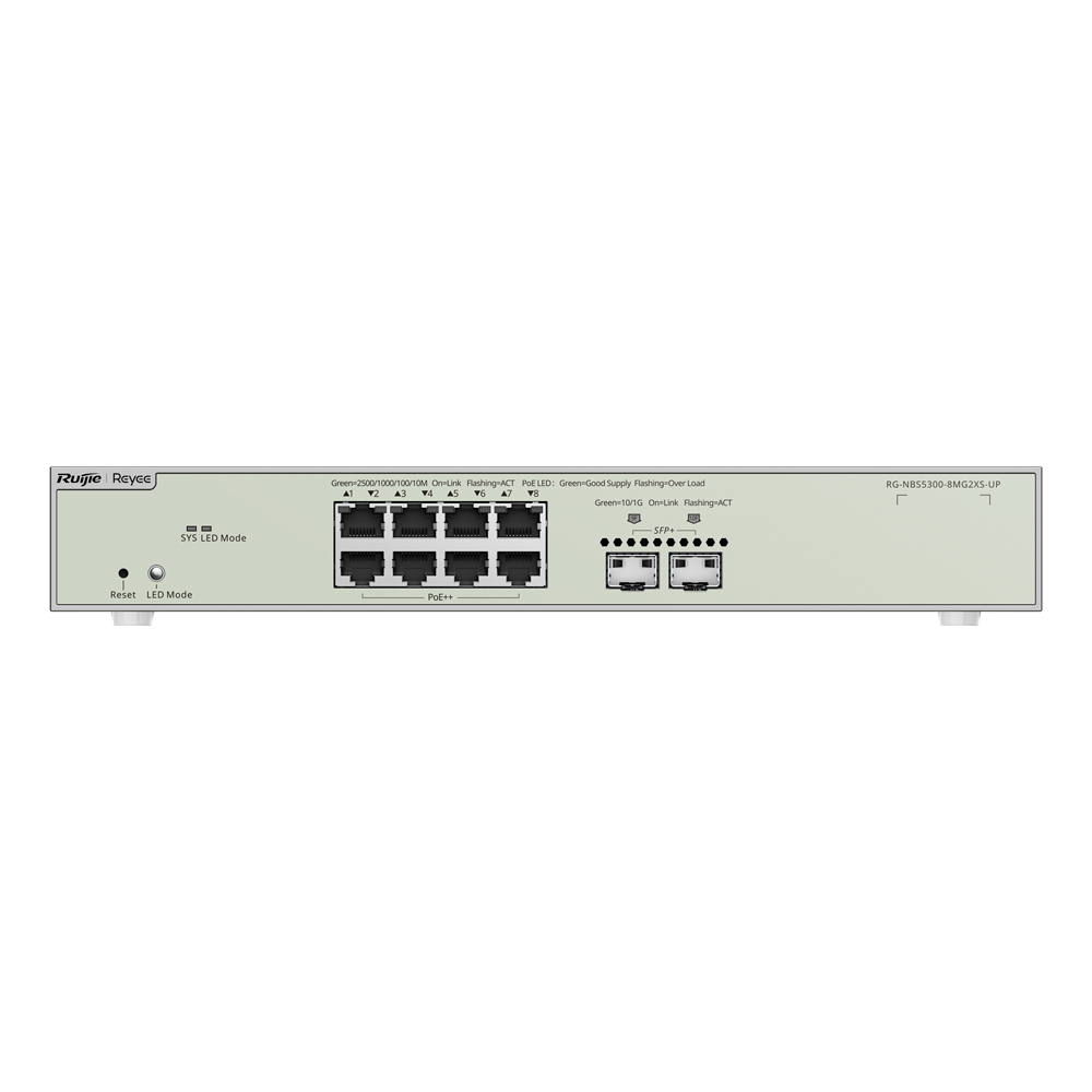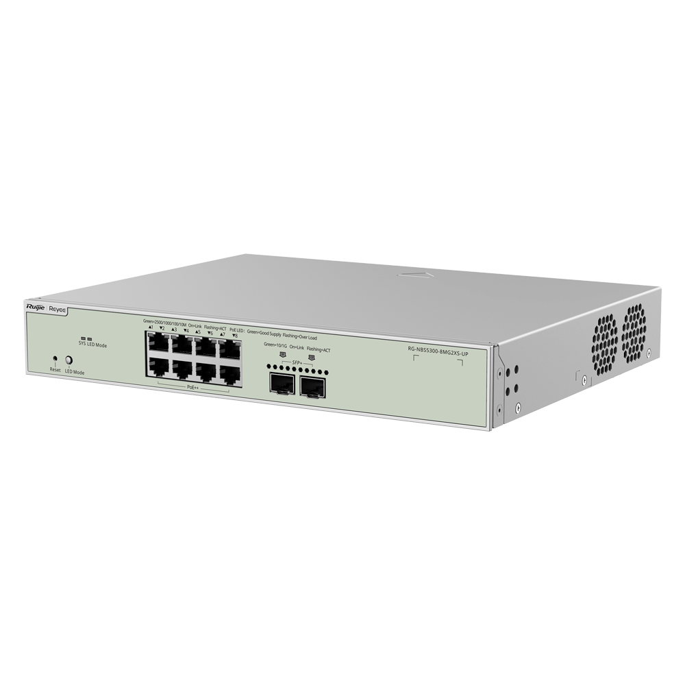 - 8 puertos RJ45 Multi-Gigabit + 2 puertos SFP+ 10Gigabit