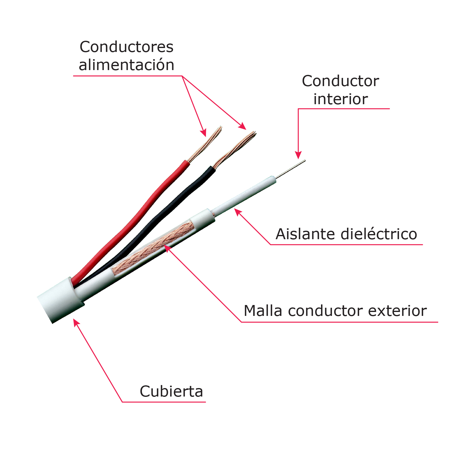 Cable combinado Micro RG59 y alimentación para instalaciones CCTV. Rollo de 300 metros. Cubierta color blanco.