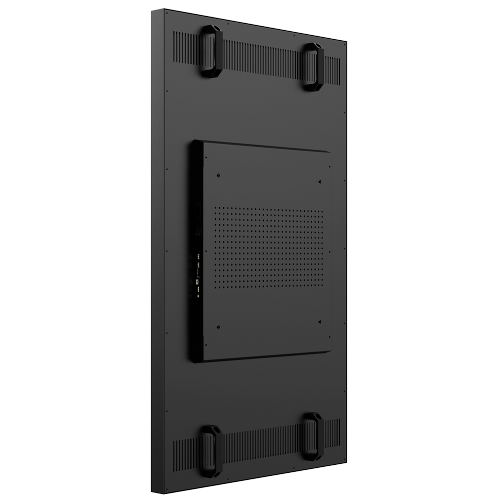 Su diseño permite instalación en orientación vertical u horizontal, y al integrarse con software de gestión de contenidos, son ideales para escaparates, vestíbulos, señalización digital y publicidad en exteriores.