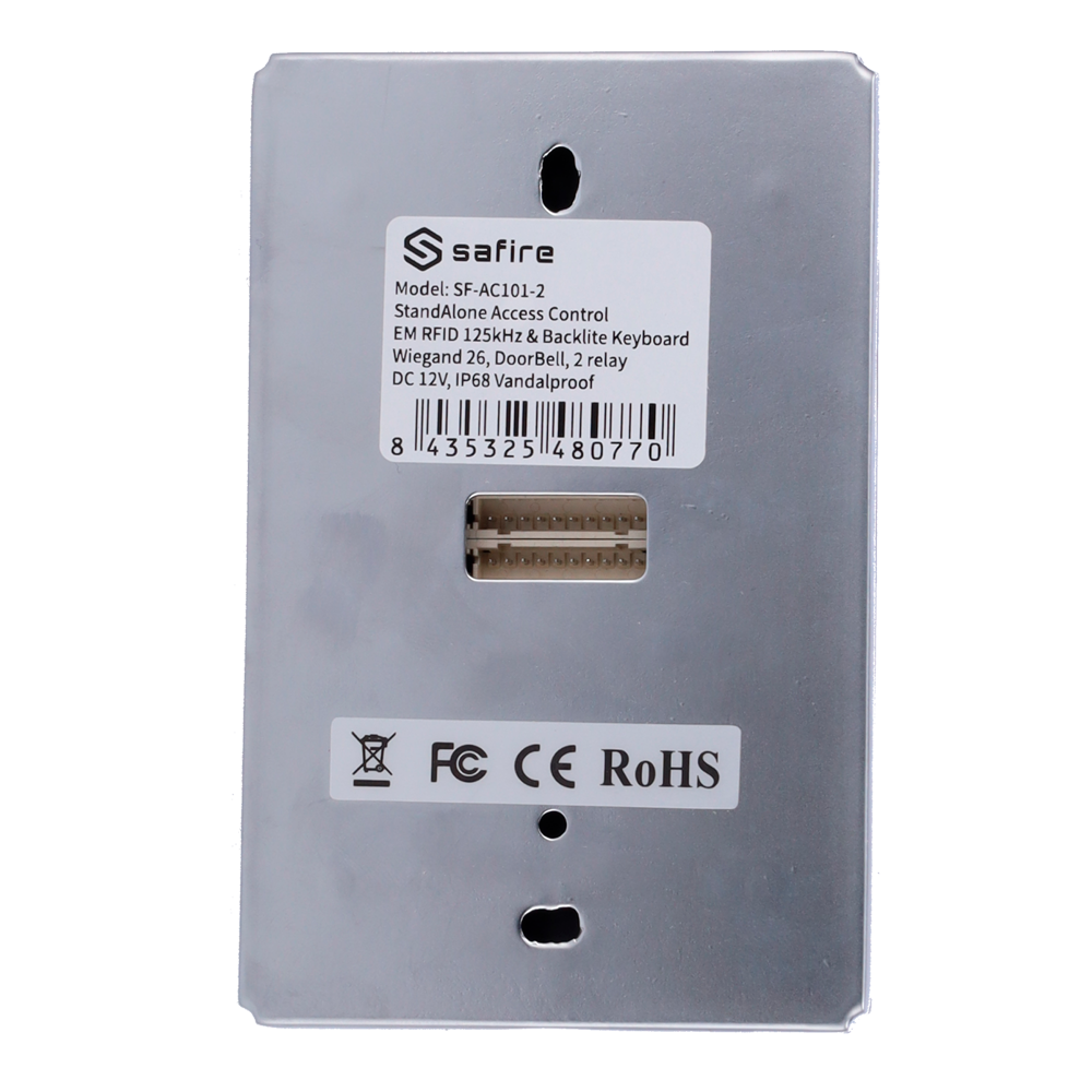 Este equipo permite la identificación a través de tarjetas o llaveros con tecnología RFID EM de 125 kHz, así como teclado para códigos numéricos.