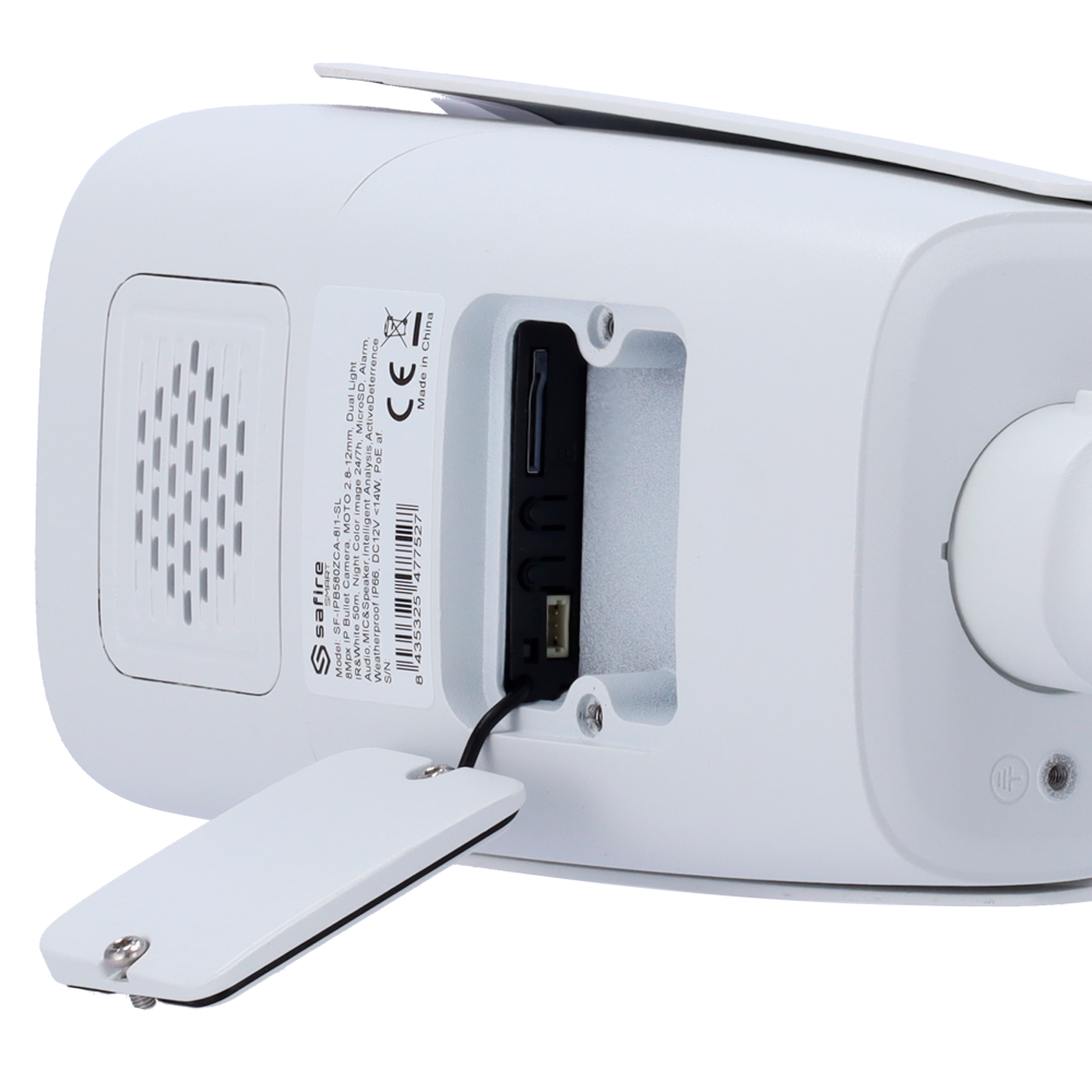 | Disuasión Activa | Flash led rojo y azul / Warning sonoro personalizado Activados a partir de un evento de inteligencia artificial *Personalización de mensajes desde interfaz web o APP Safire Smart |