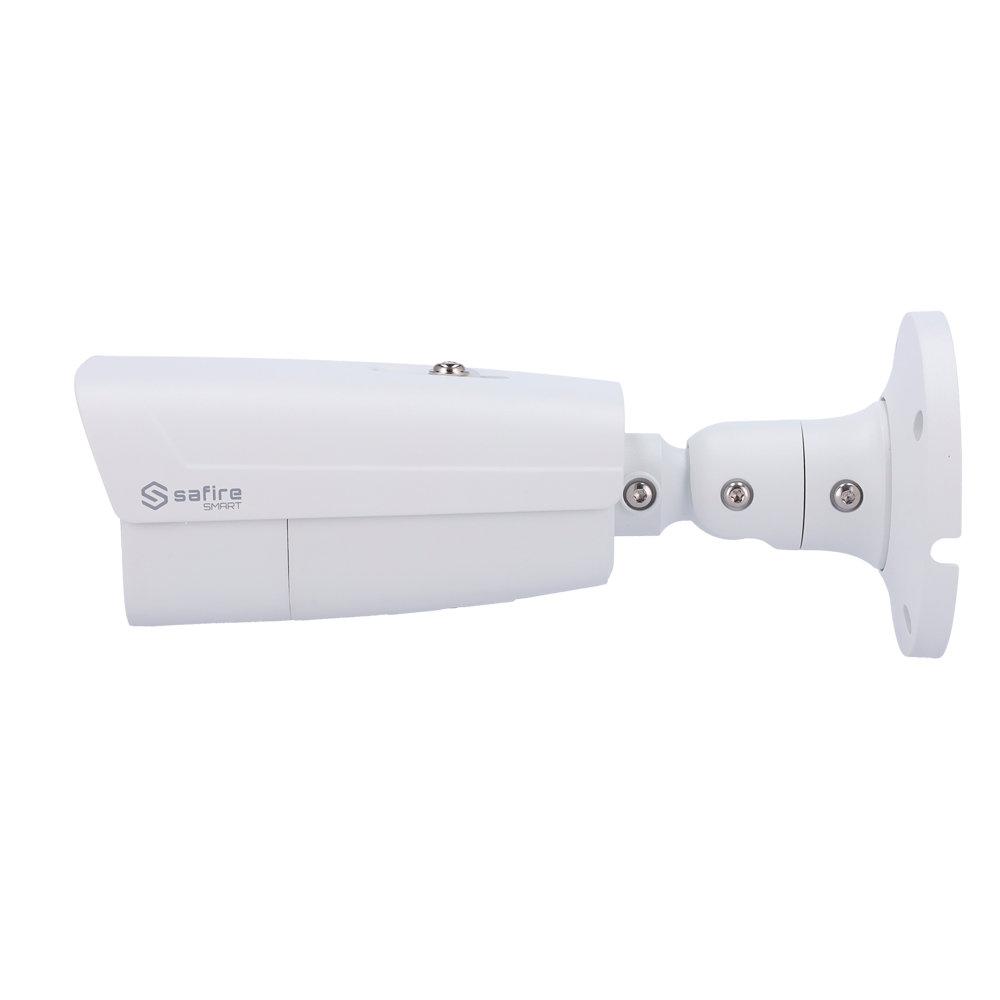La cámara IP Bullet Safire Smart I1 combina alta resolución de 12MP con funciones avanzadas de inteligencia artificial, como detección y conteo de personas, vehículos y vehículos no motorizados, además de captura facial y generación de metadatos de vídeo. Su lente motorizada de 2.8-12 mm, visión nocturna de 70 m, audio integrado y almacenamiento en microSD de hasta 512GB la convierten en una solución completa para entornos exigentes. Compatible con ONVIF, PoE y certificación IP67.