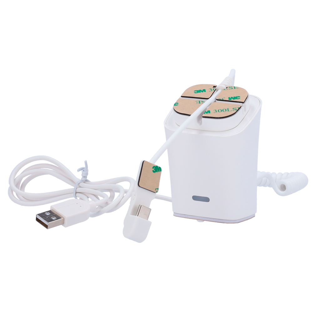 | Alarma | Alarma acústica de 100 db e indicador luminoso Activación por movimiento del soporte (tamper) o por extracción del cable Lightning |