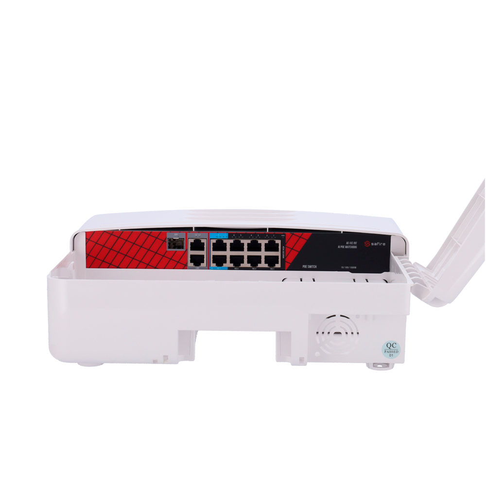 La conectividad es otro de sus puntos fuertes, ofreciendo un puerto Gigabit en cobre y dos ranuras SFP para fibra óptica, lo que permite crear topologías de red en cadena o anillo con redundancia, asegurando que la señal de video recorra kilómetros sin interferencias. Además, incorpora la inteligencia PoE Watchdog para reiniciar automáticamente cualquier cámara que se bloquee, minimizando los costosos desplazamientos de mantenimiento a lugares de difícil acceso. Es, en esencia, un tanque tecnológico para infraestructuras de seguridad críticas.