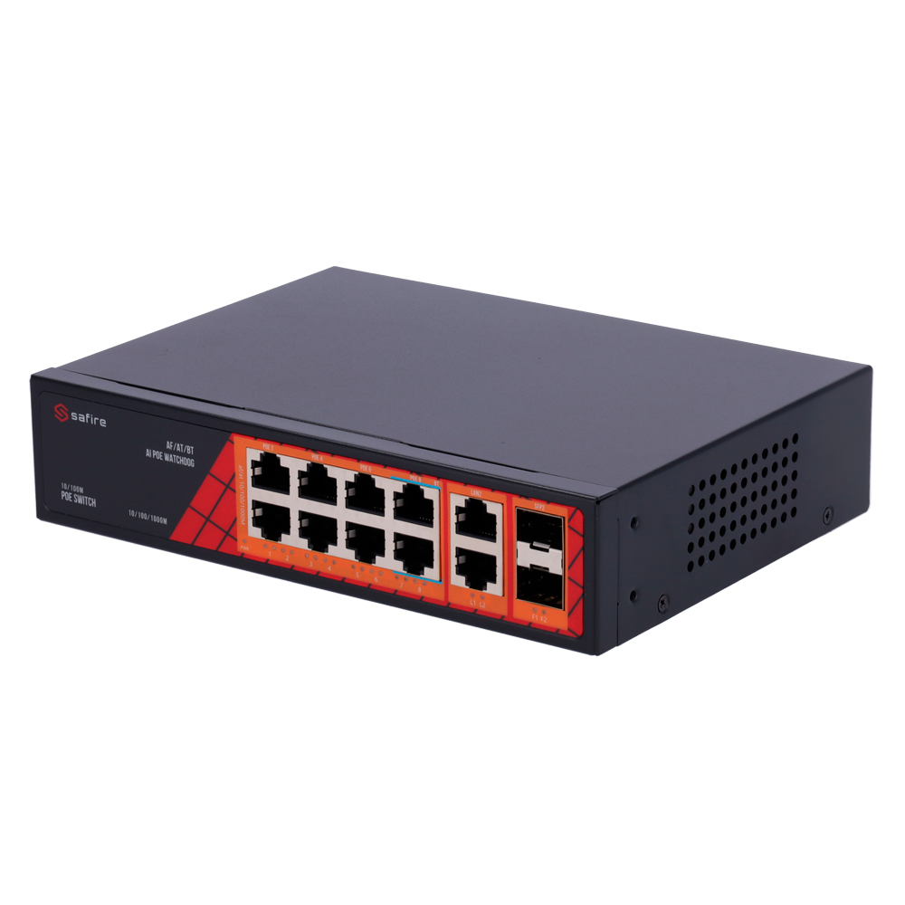 - 8 puertos PoE + 2 SFP + 2 RJ45