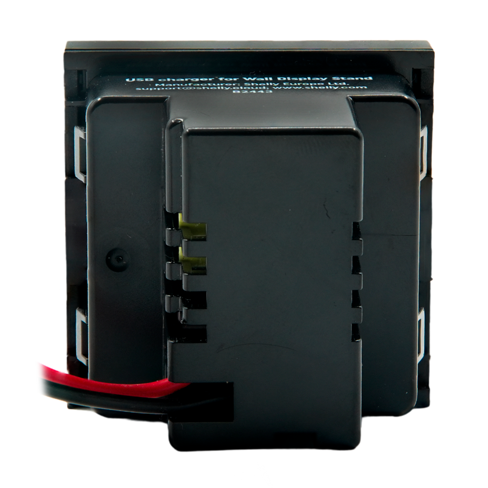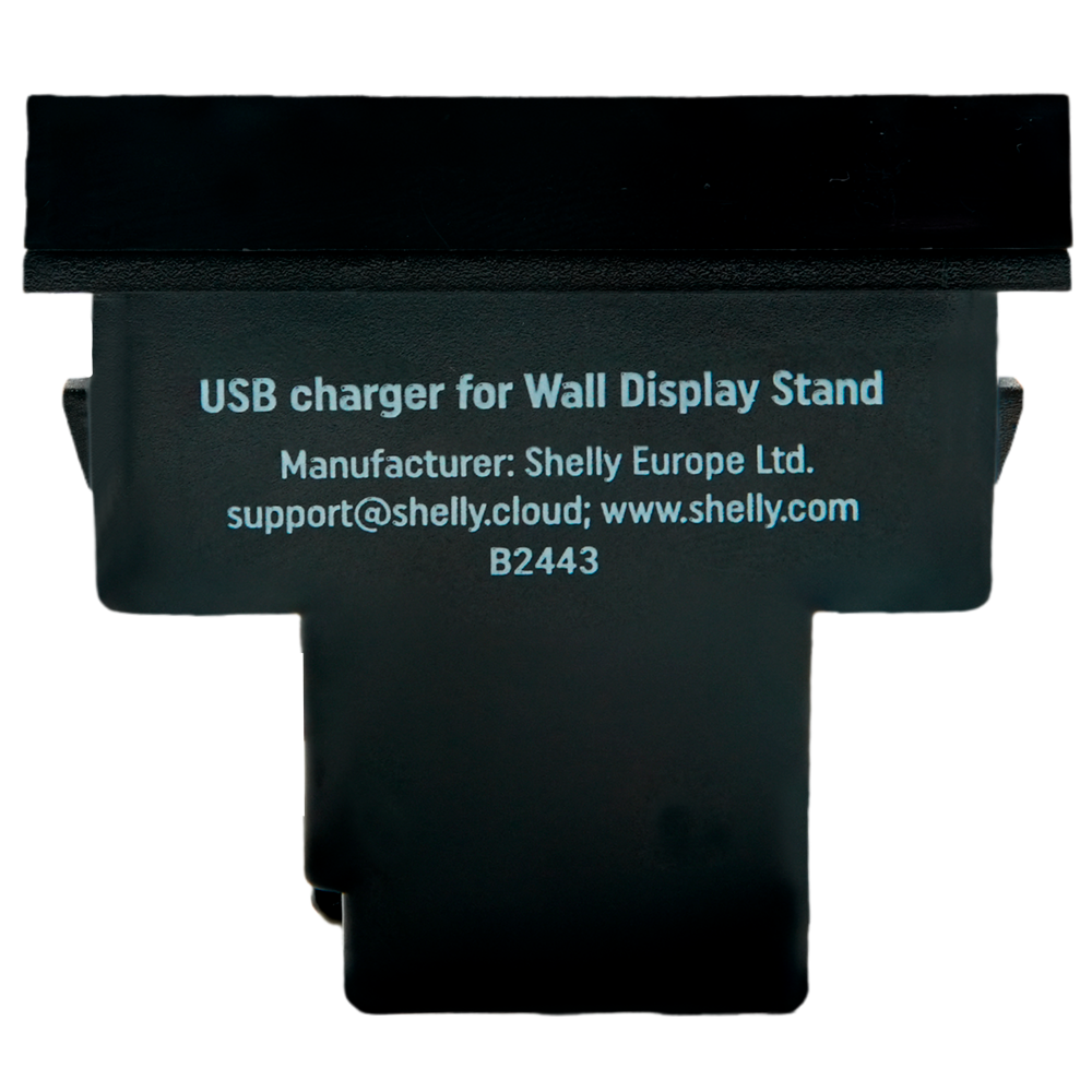 - Adaptador de cargador USB (USB-C/USB-A), diseñado específicamente para el soporte de pared Shelly