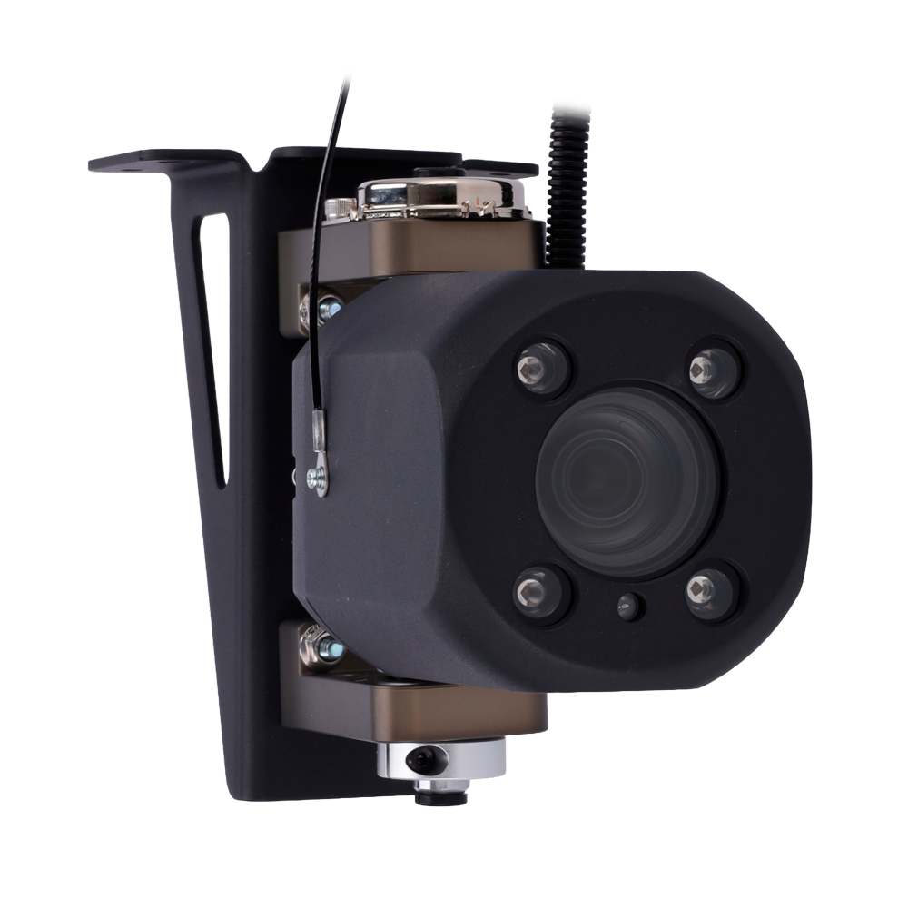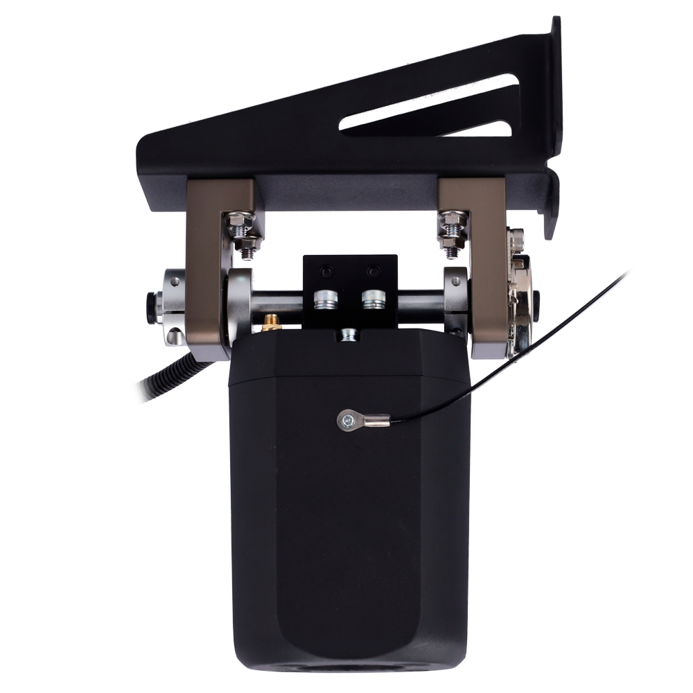 Cámara colgante inalámbrica para grúas con detección de peatones y control de lente por pedal. Compatible con monitor STK-HDW295 y pedal STK-PEDAL-SWITCH. Resistente al agua con protección IP69K y alcance RF hasta 150m.