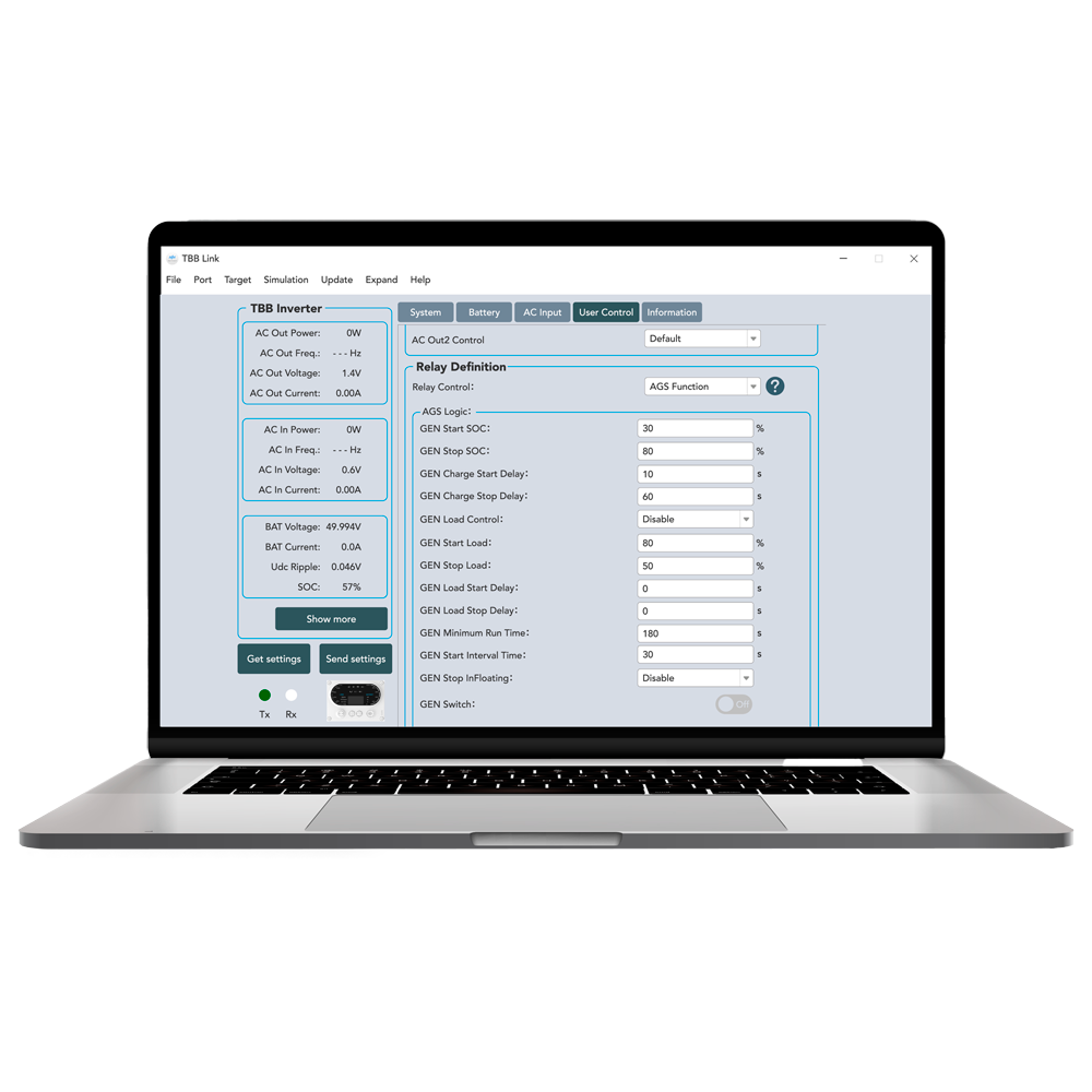 La TBB-INTERFACE permite conectar los inversores de la gama Riio Sun II a cualquier PC. Mediante el intuitivo y fácil de usar software TBB Link los instaladores pueden configurar, actualizar y diagnosticar en local sus instalaciones a tiempo real. Es posible además realizar ajustes más complejos como configuraciones en paralelo o trifásicas.