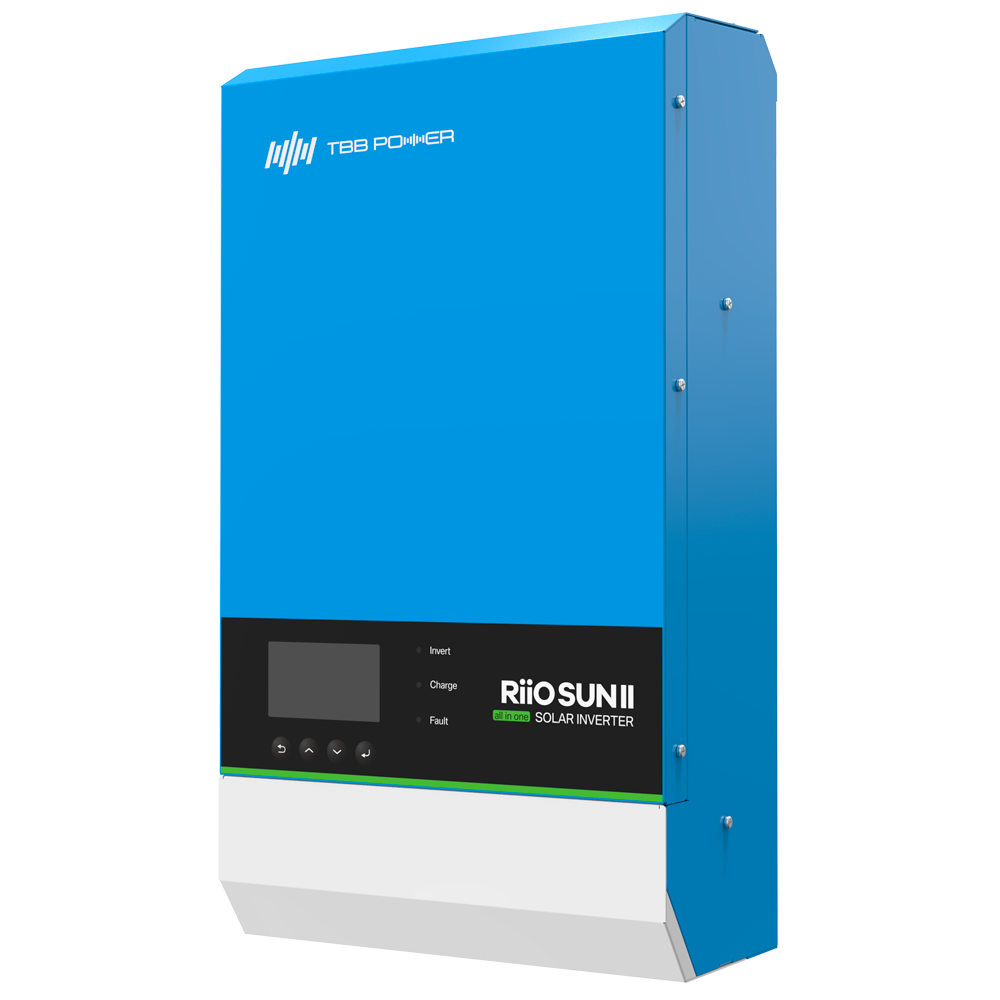 La serie RioSun II de TBB es una gama de inversores solares todo en uno cuya principal característica es la versatilidad. Al tener regulador solar, inversor y cargador de baterías, es válido en multitud de instalaciones, como pueden ser conectadas a red (con y sin baterías) o aisladas.