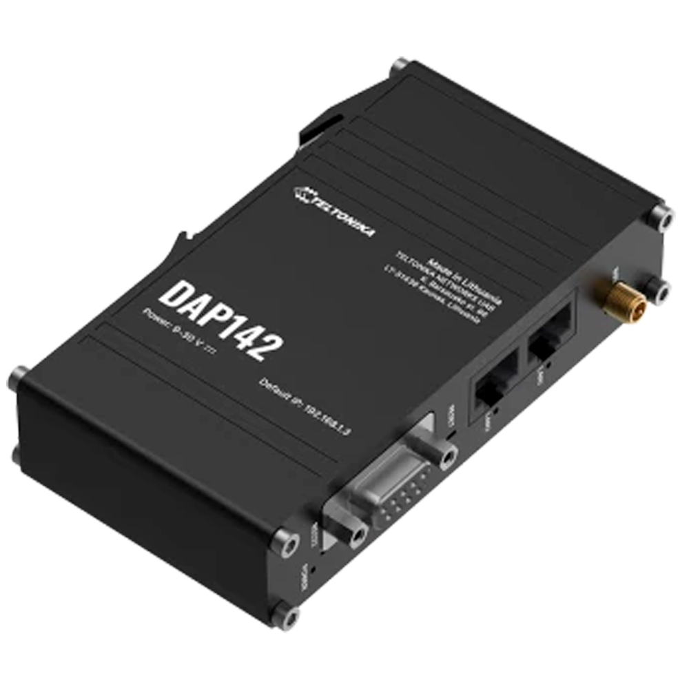 El Teltonika DAP142 es un punto de acceso Wi-Fi industrial diseñado para ofrecer conectividad inalámbrica robusta y confiable en entornos exigentes. Su diseño resistente, con carcasa de aluminio y soporte para carril DIN, lo hace ideal para aplicaciones industriales que requieren una instalación duradera y segura. Este dispositivo es particularmente útil en fábricas inteligentes y entornos de automatización industrial, donde la interconexión de equipos es esencial. Gracias a su compatibilidad con Wi-Fi Mesh y Fast Roaming, permite una cobertura inalámbrica continua y sin interrupciones, facilitando la movilidad de dispositivos y operadores dentro de la planta. Una característica distintiva del DAP142 es su puerto RS232, que permite la conexión directa con equipos industriales clave, como brazos robóticos y interfaces hombre-máquina (HMI), facilitando la integración de dispositivos heredados en la red moderna. Además, el DAP142 soporta hasta 50 conexiones simultáneas, lo que lo hace adecuado para entornos con alta densidad de dispositivos. Su alimentación a través de un conector de 3 pines adaptado para uso industrial y su funcionalidad plug-and-play simplifican su implementación y configuración.