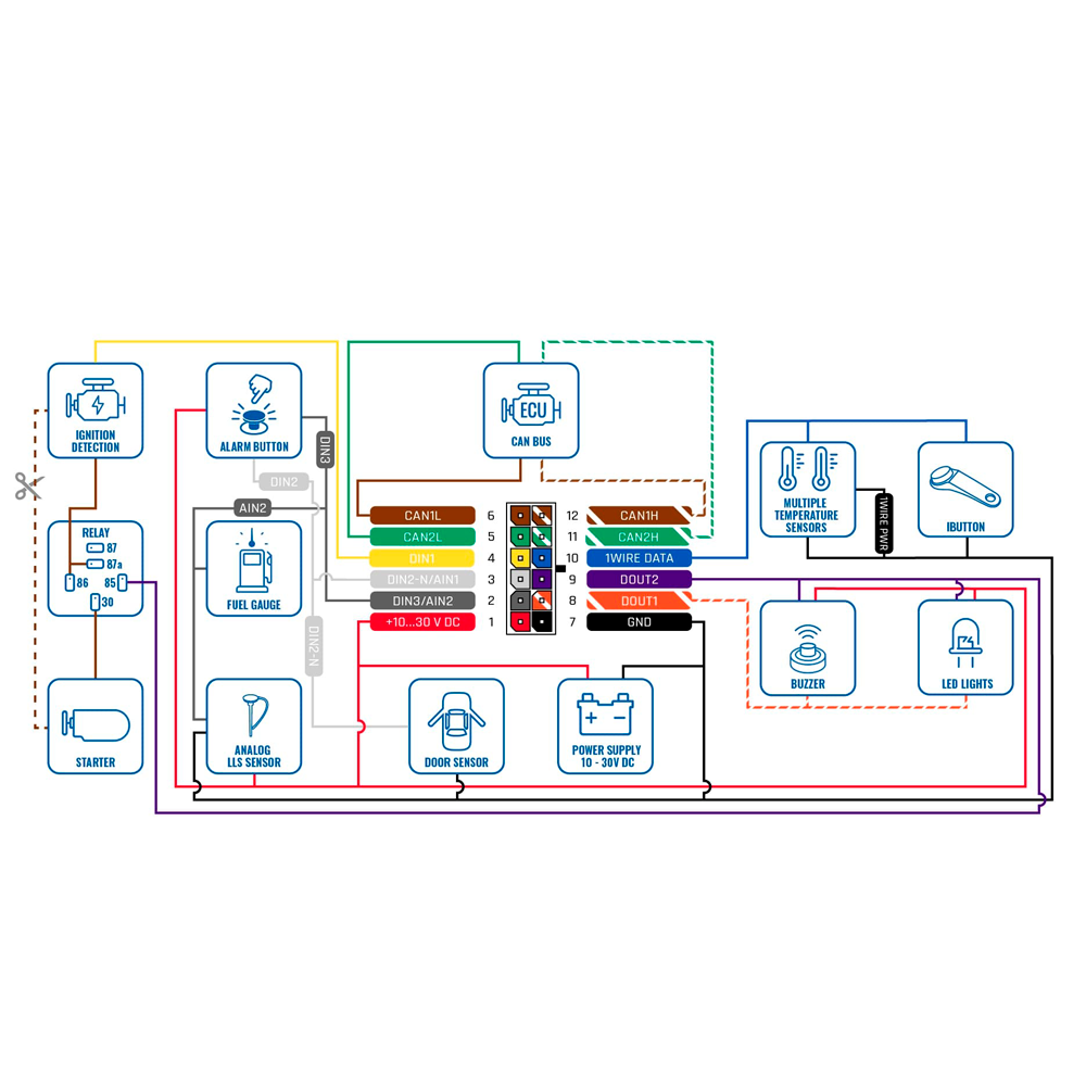 | Funciones específicas | Lectura de datos bus CAN: nivel de combustible, consumo de combustible, odómetro, velocidad, distancia recorrida, RPM |