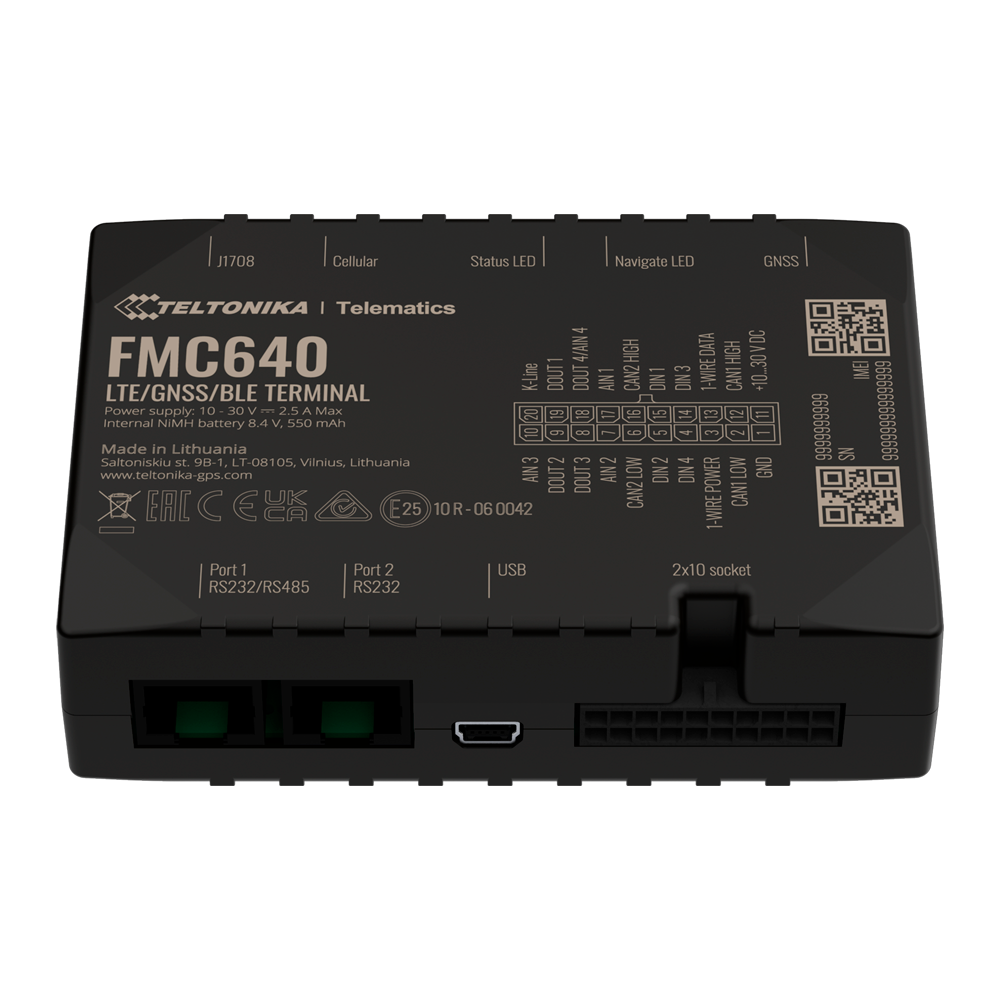 | Entradas | 4 x Entrada digital 4 x Entrada analógica 2 x Entrada bus CAN J1939 / 1 x Entrada bus CAN J1708 1 x Entrada 1-Wire 2 x RS232 1 x RS485 1 x Entrada tacógrafo |