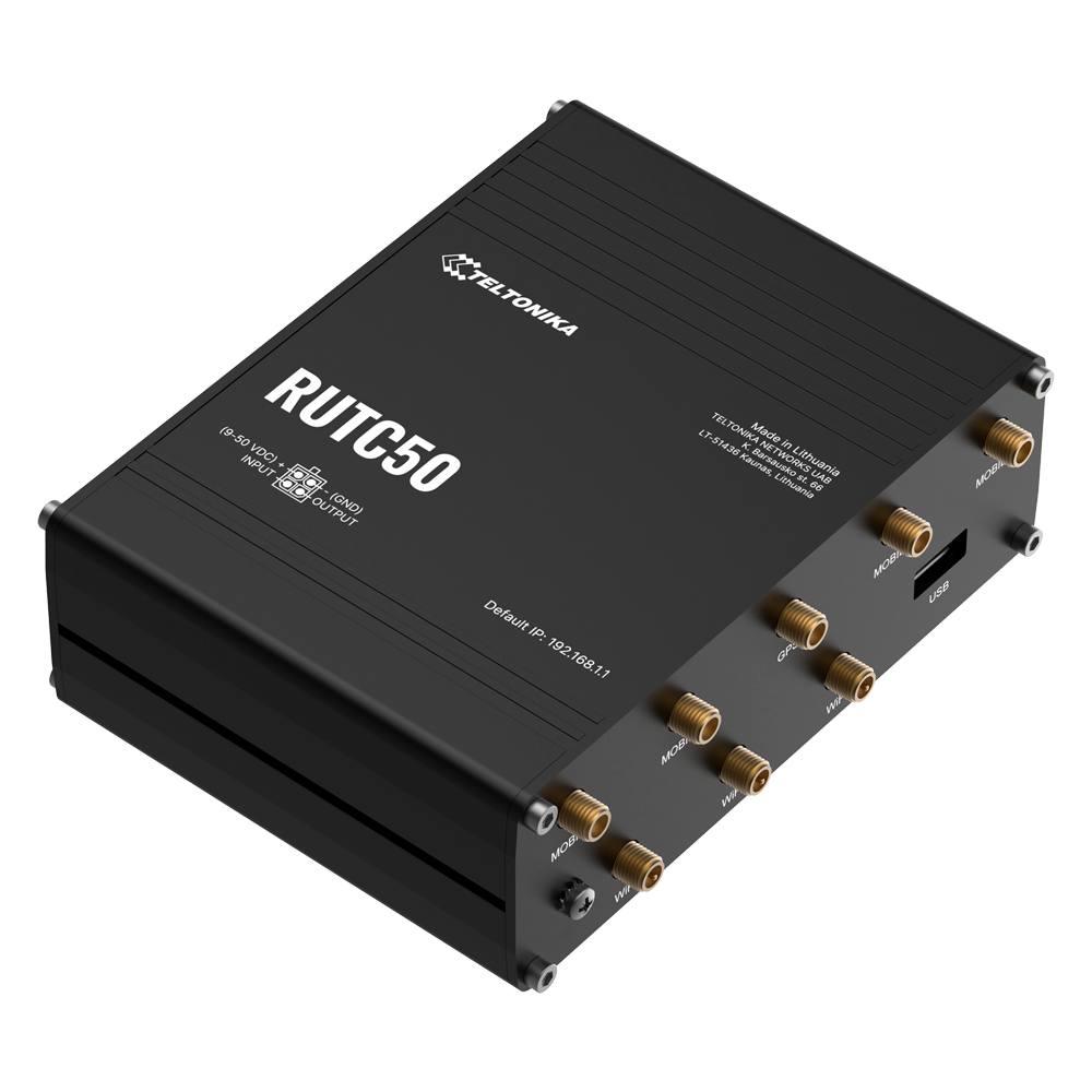 El RUTC50 es un potente router industrial 5G diseñado para proporcionar una conectividad móvil de última generación y alta fiabilidad en sectores críticos como ciudades inteligentes, automatización industrial y empresas. Gracias a su módem 5G Sub-6 GHz, alcanza velocidades de descarga de hasta 3,4 Gbps, integrando además Wi-Fi 6 de doble banda con tecnología MU-MIMO para garantizar un rendimiento inalámbrico superior y soporte para hasta 512 usuarios simultáneos.