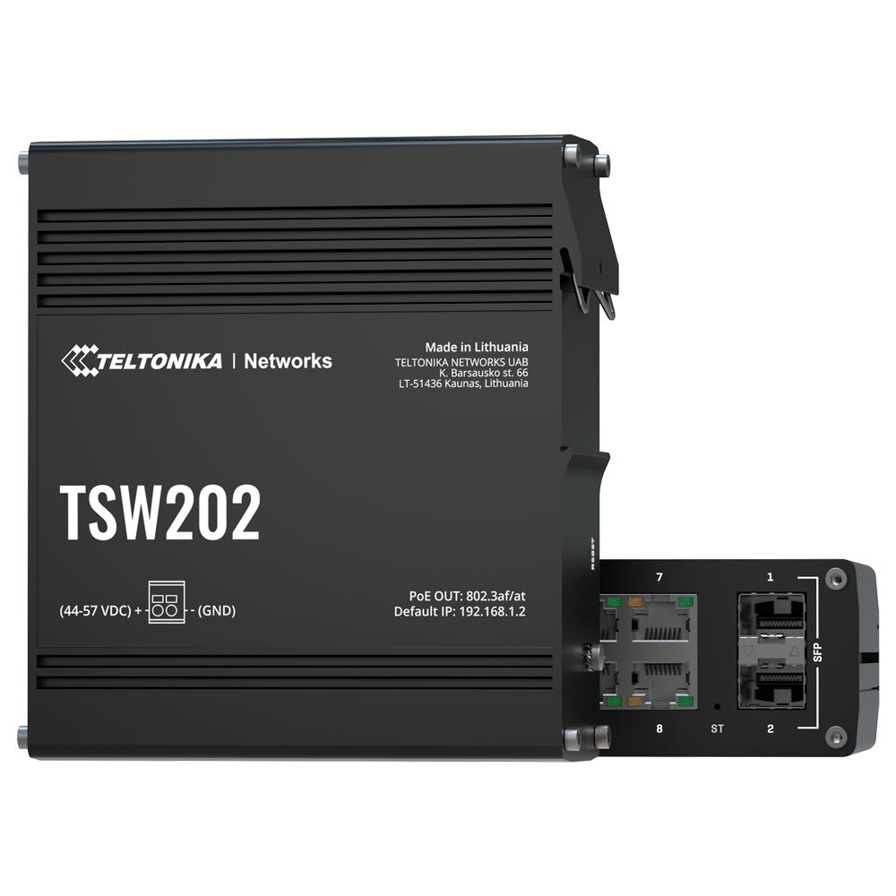 | Alimentación | Conector DC 2 Pines industrial 7~57VDC sin alimentar dispositivos PoE y 44~57VDC alimentando dispositivos PoE (No incluye fuente de alimentación) Consumo máximo 8W / 248W con PoE |